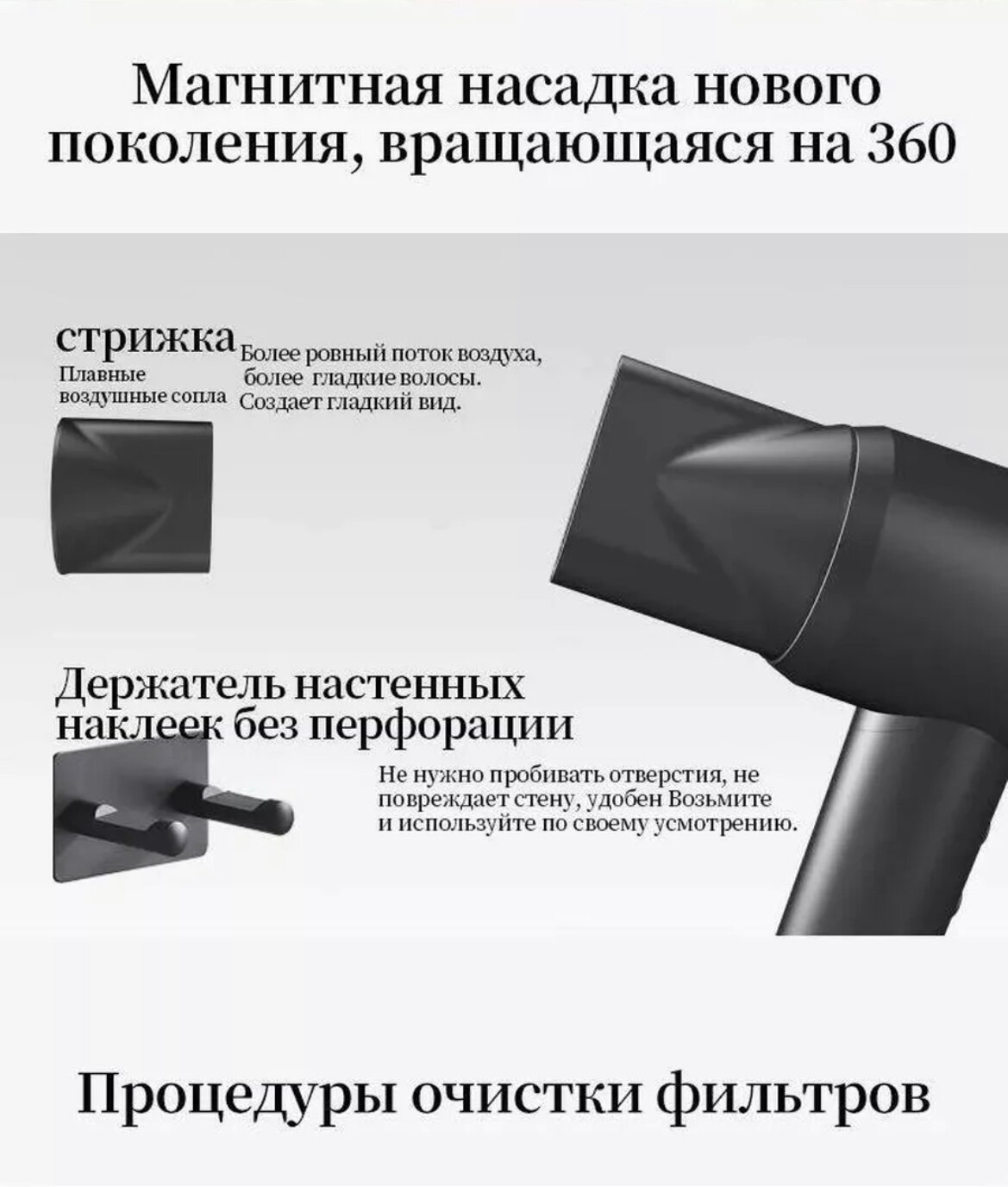 | Подробная комплектация | Насадка для бережного высушивания , настенное крепление |