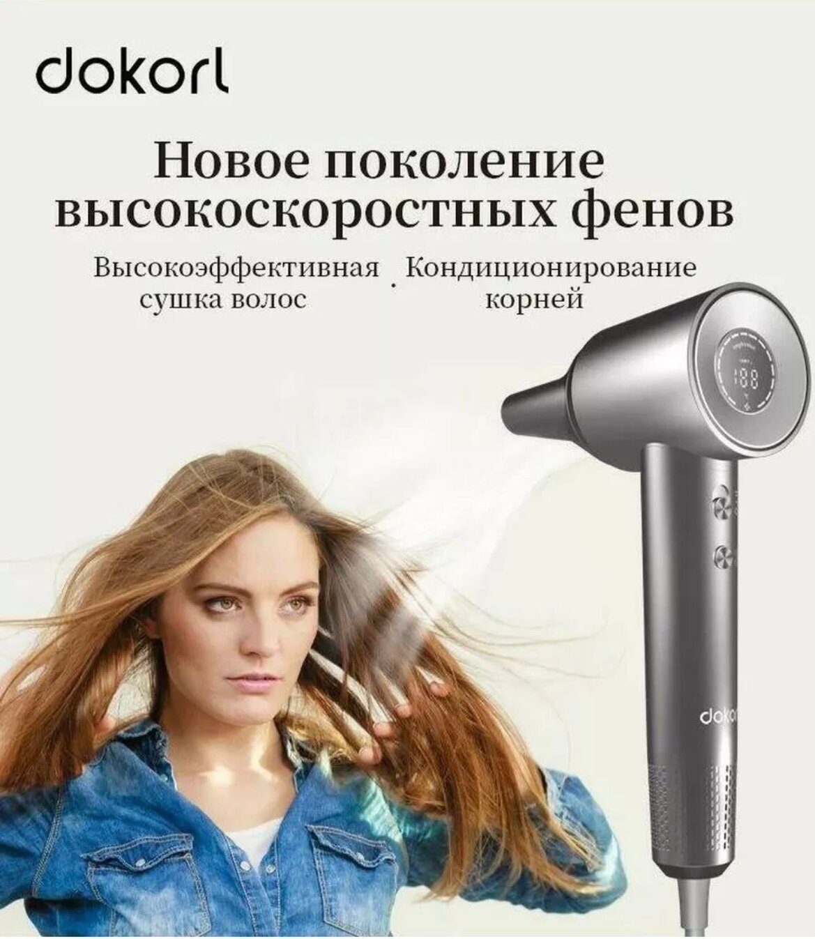 Фен для волос "Dokorl HD1" Профессиональный с ионизацией и LED-дисплеем. Серый и белый. интересное: