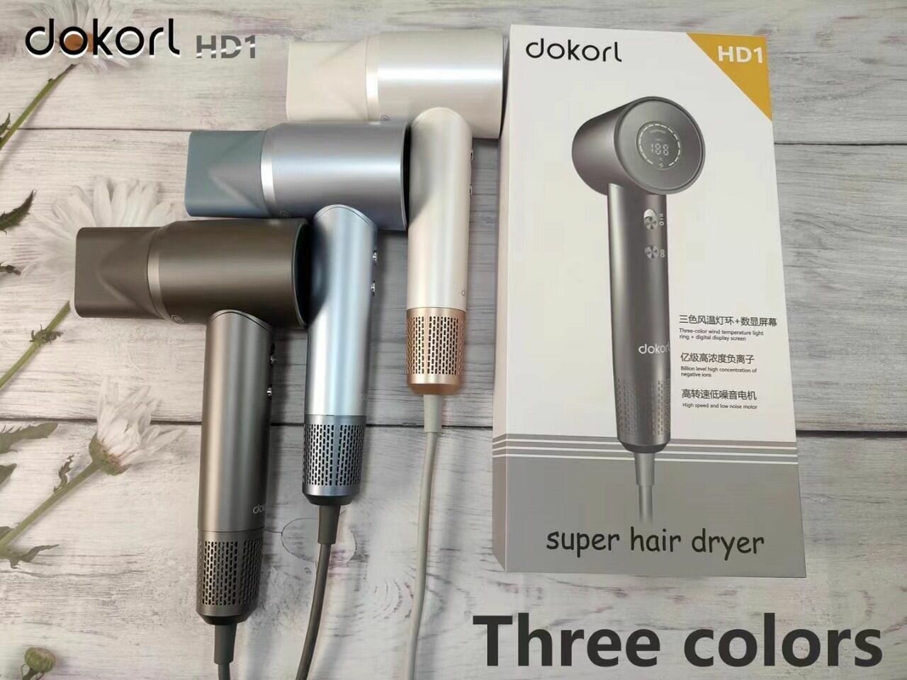 Фен для волос "Dokorl HD1" Профессиональный с ионизацией и LED-дисплеем. Белый и серый.