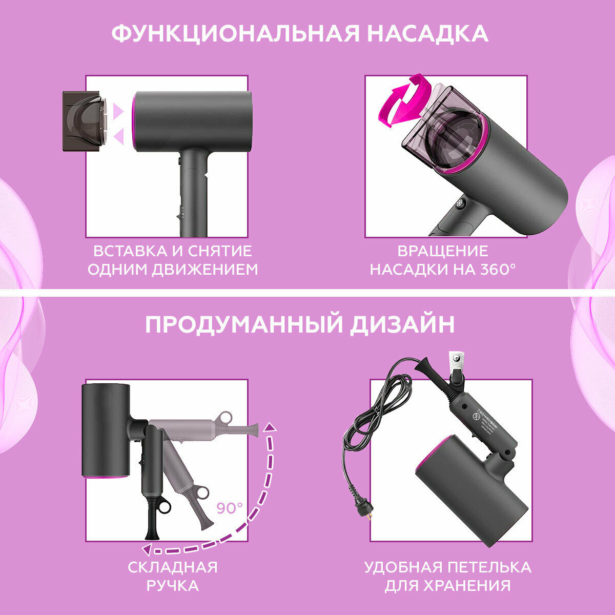 Фен для волос профессиональный, с насадками, дорожный, складной, с ионизацией, для укладки волос интересное: