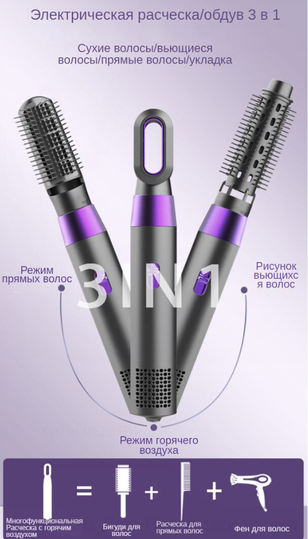 Фен 3 в 1 / Фен расческа для волос / Фен с насадками от GadFamily интересное: