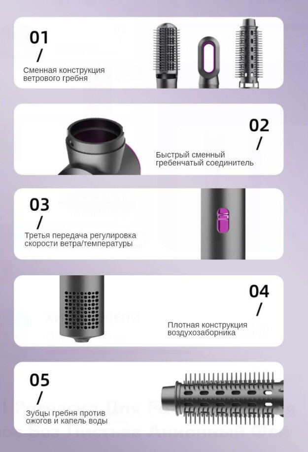 | Подробная комплектация | Фен расческа с насадками |