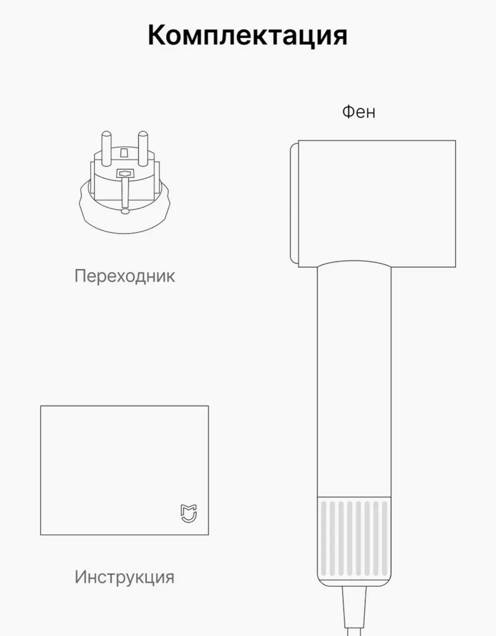 Фен Xiaomi, бесшумный, ионизация, мощность 1600Вт, длина шнура 1,7м