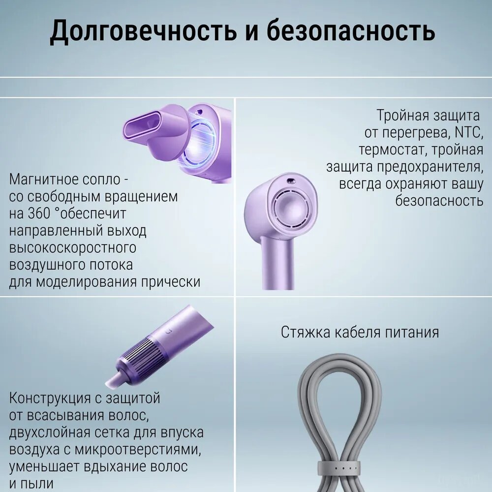 Фен H701 для волос с функцией ионизации Mijia Purple CN интересное: