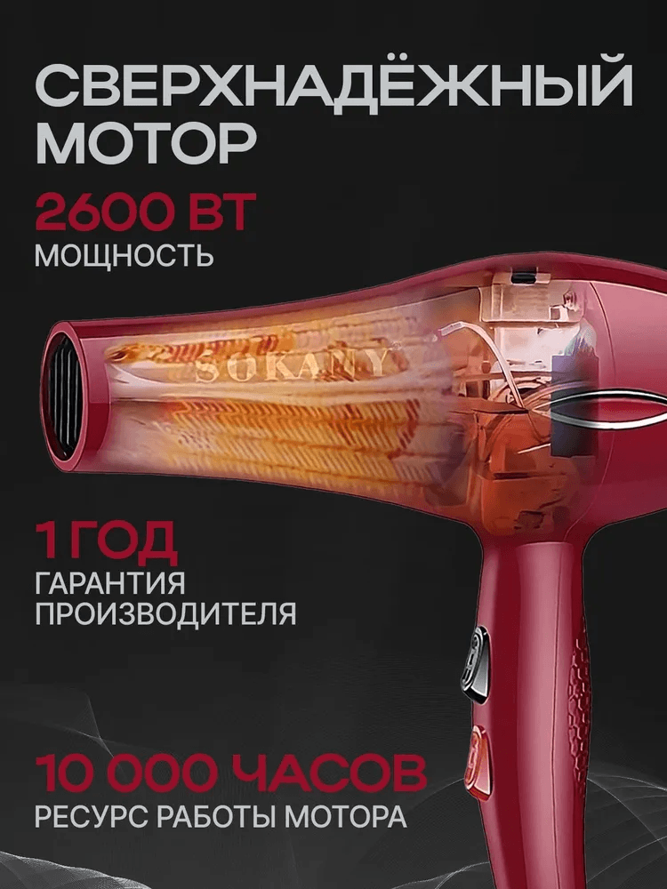 Купить Профессиональный фен с диффузором SOKAN. Три насадки в комплекте. я. Супер - мощный.