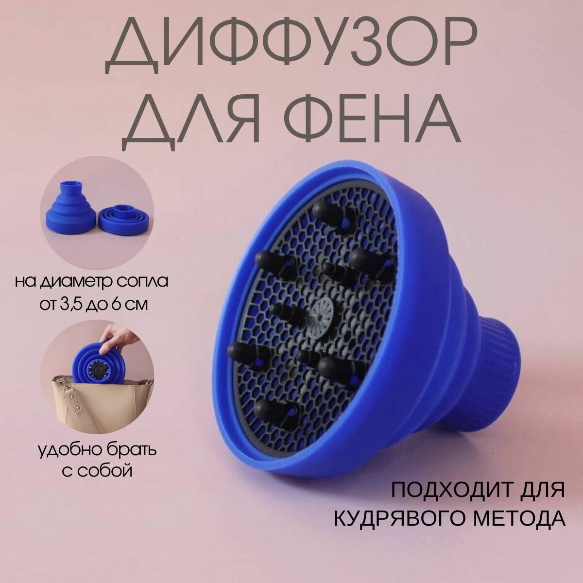 Купить Диффузор для фена универсальный, Насадка для фена, силиконовая насадка для кудрявого метода синяя