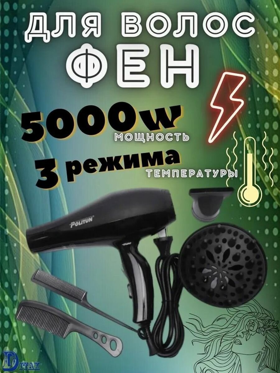 Профессиональный Фен РТV11, фен для волос, 5000Вт, 3 режима нагрева, 2 скорости, подача холодного воздуха, диффузор, концентратор, расчестки интересное: