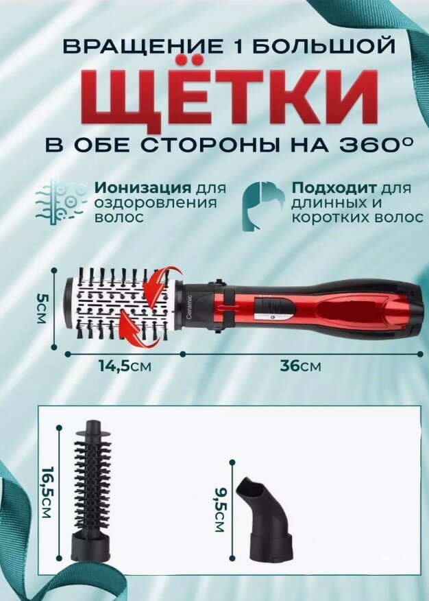 Фен-щетка PRO6618 для волос с крутящейся насадкой, 2000Вт, 3 насадки в комплекте, 3 режима нагрева, защита от перегрева интересное: