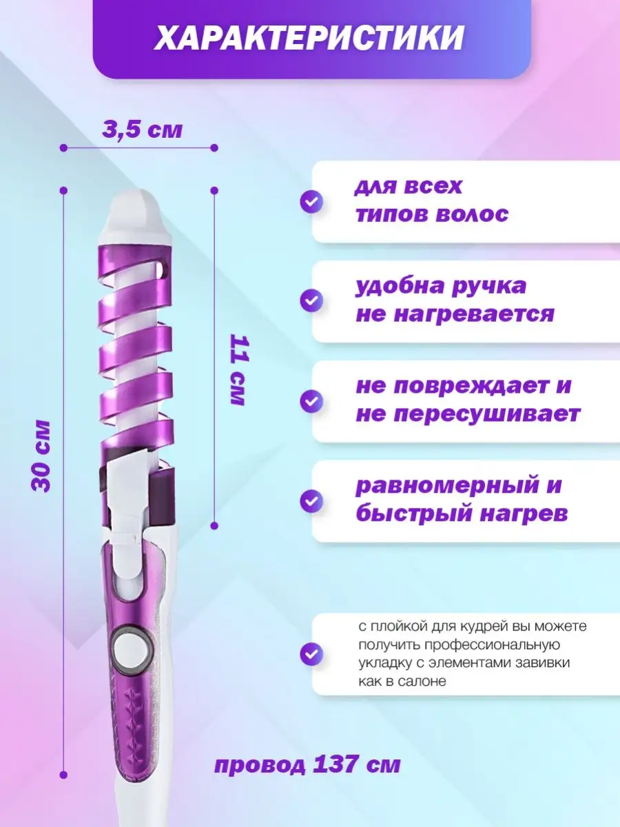 Плойка спиральная для волос NOVA Professional Curler NHC-5300,локоны мечты интересное: