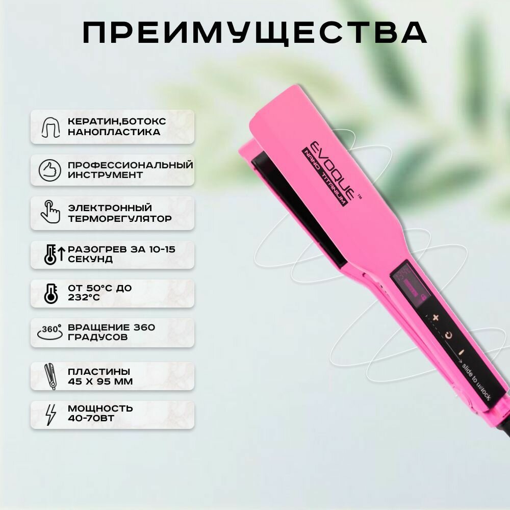 Купить Утюжок EVOQUE Touch Screen Nano Titanium широкие пластины розовый