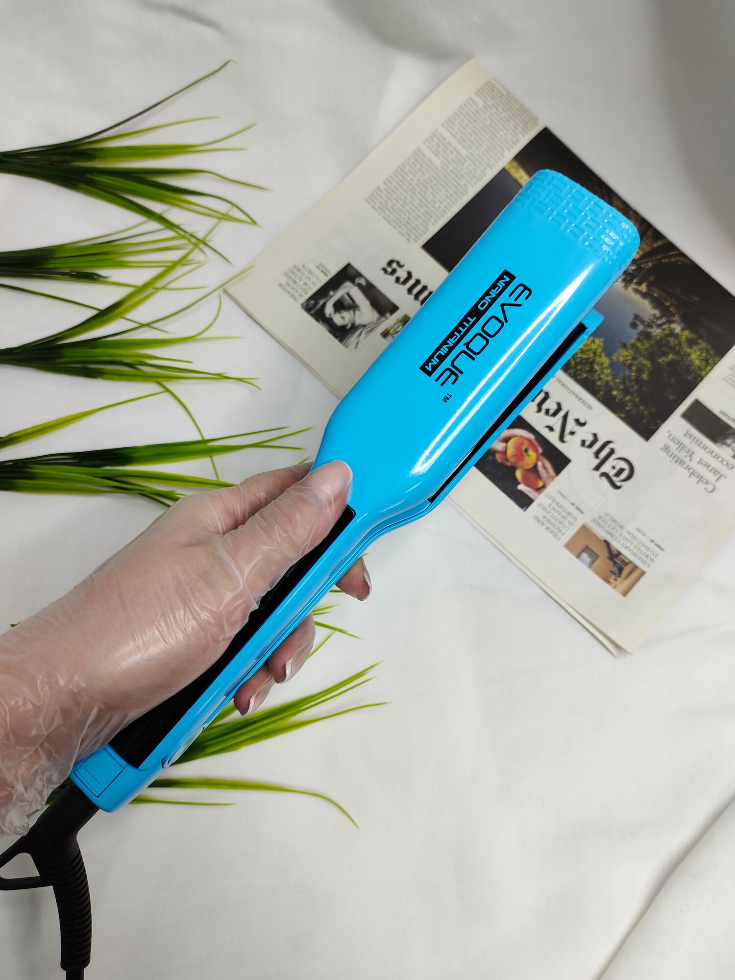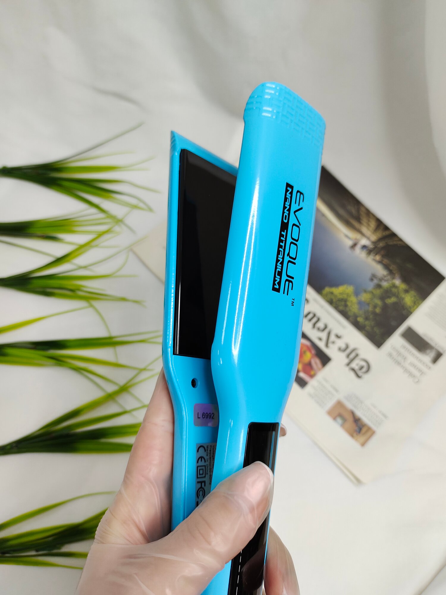 Щипцы-выпрямители/утюжок с широкими пластинами EVOQUE SCYBLUE TouchScreen Nano Titanium Wide, небесно-голубой
