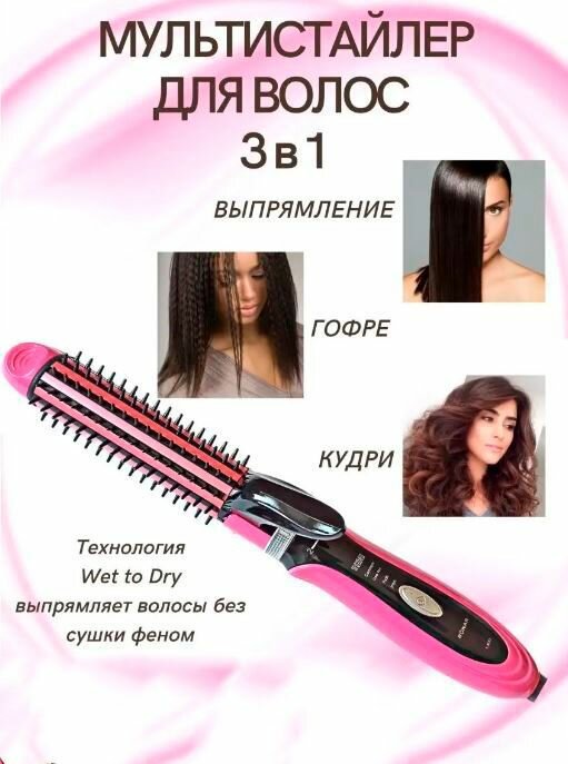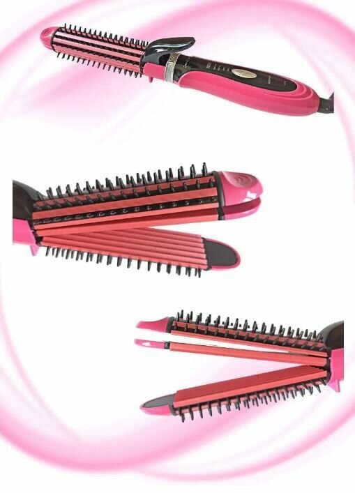 Плойка для волос / Мультистайлер для волос, 3 в 1 / Щипцы для завивки, NHC-8890, розовый интересное: