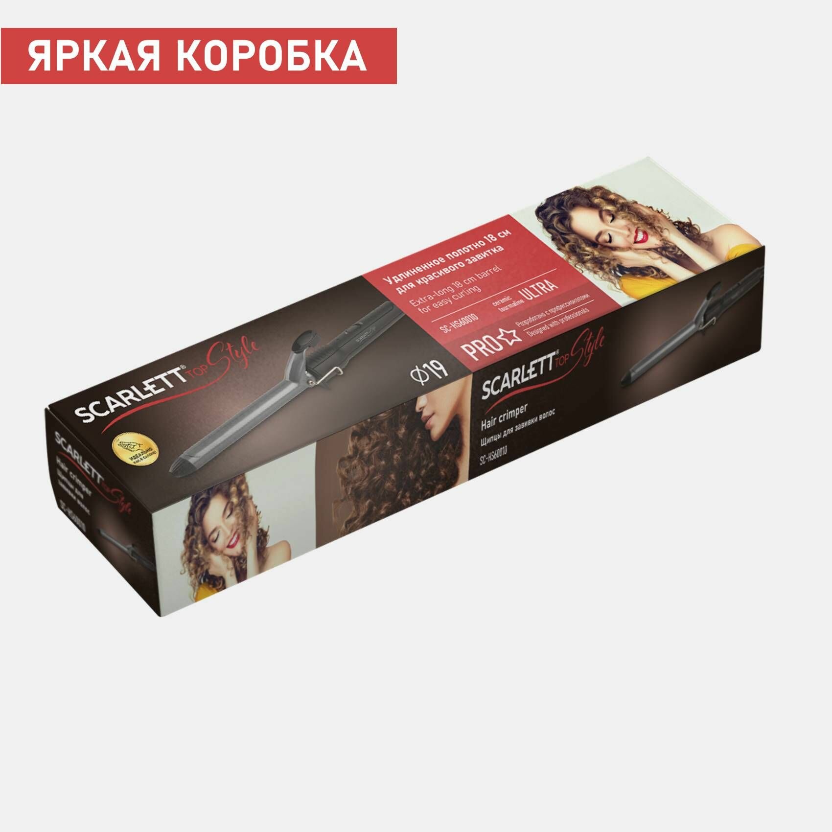 Плойка для завивки волос Scarlett SC-HS60010, керамико-турмалиновое покрытие, диаметр 19 мм