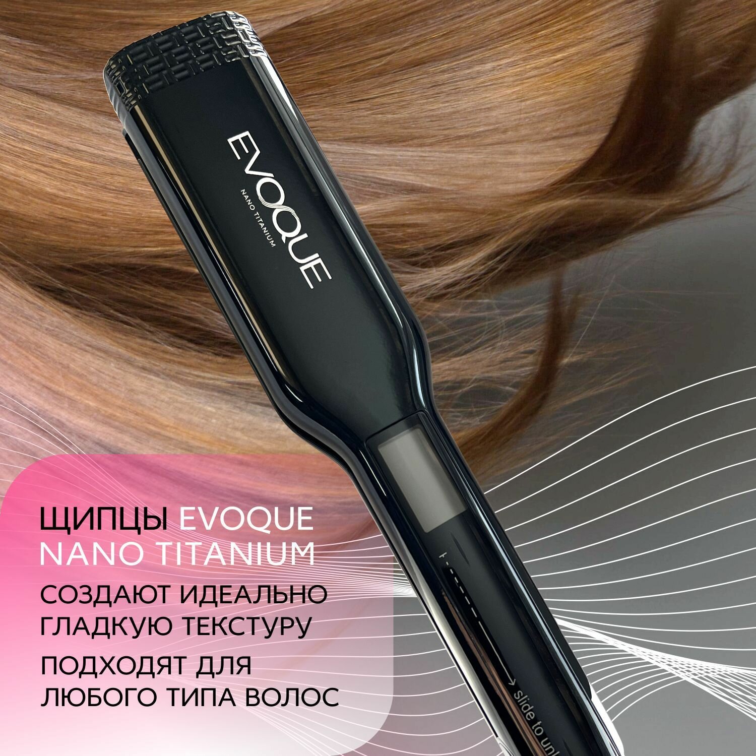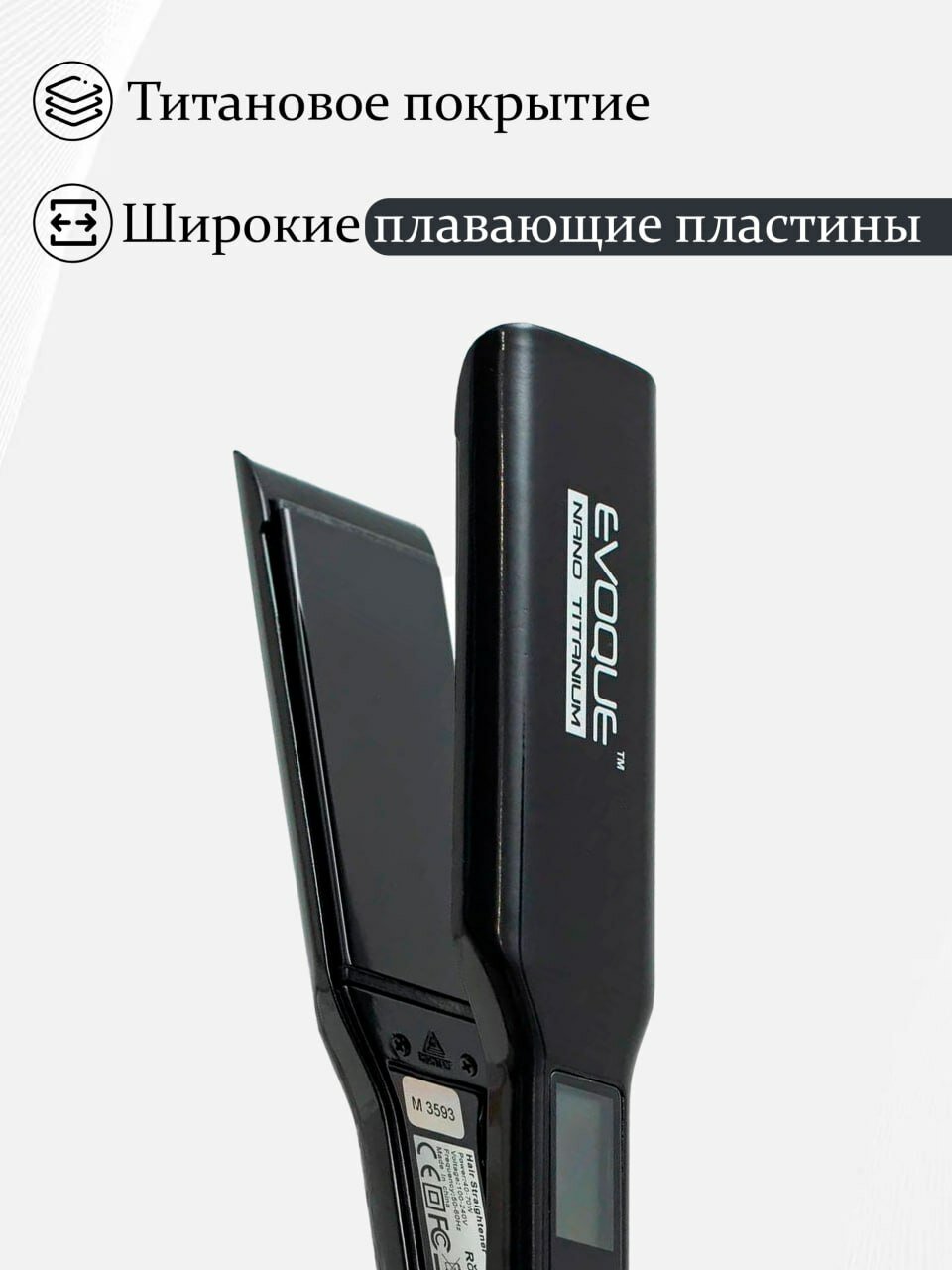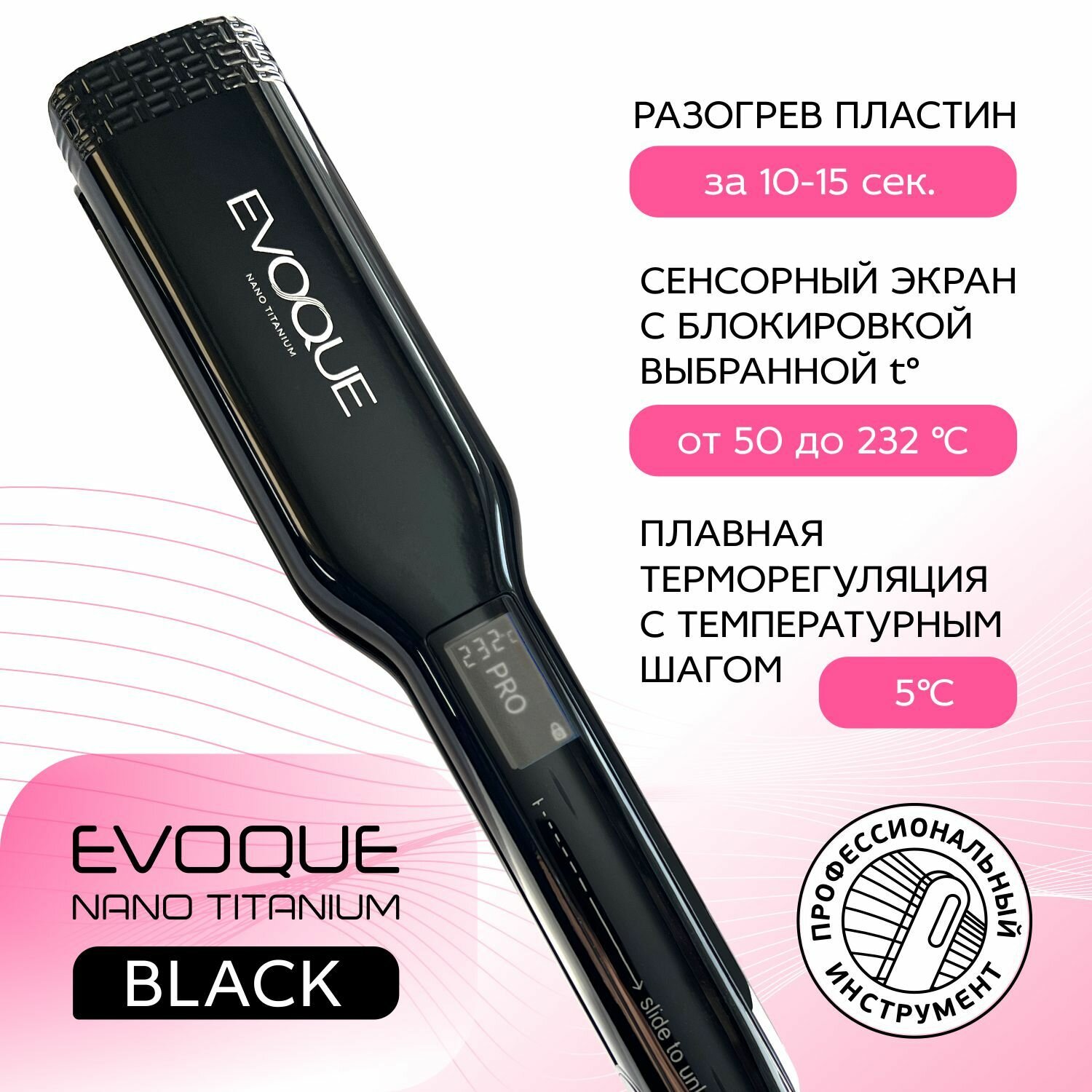 Щипцы-выпрямители с широкими пластинами EVOQUE BLACK TouchScreen Nano Titanium Wide интересное: