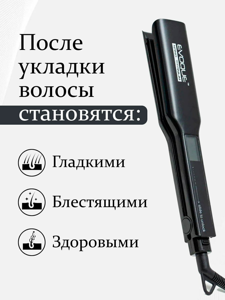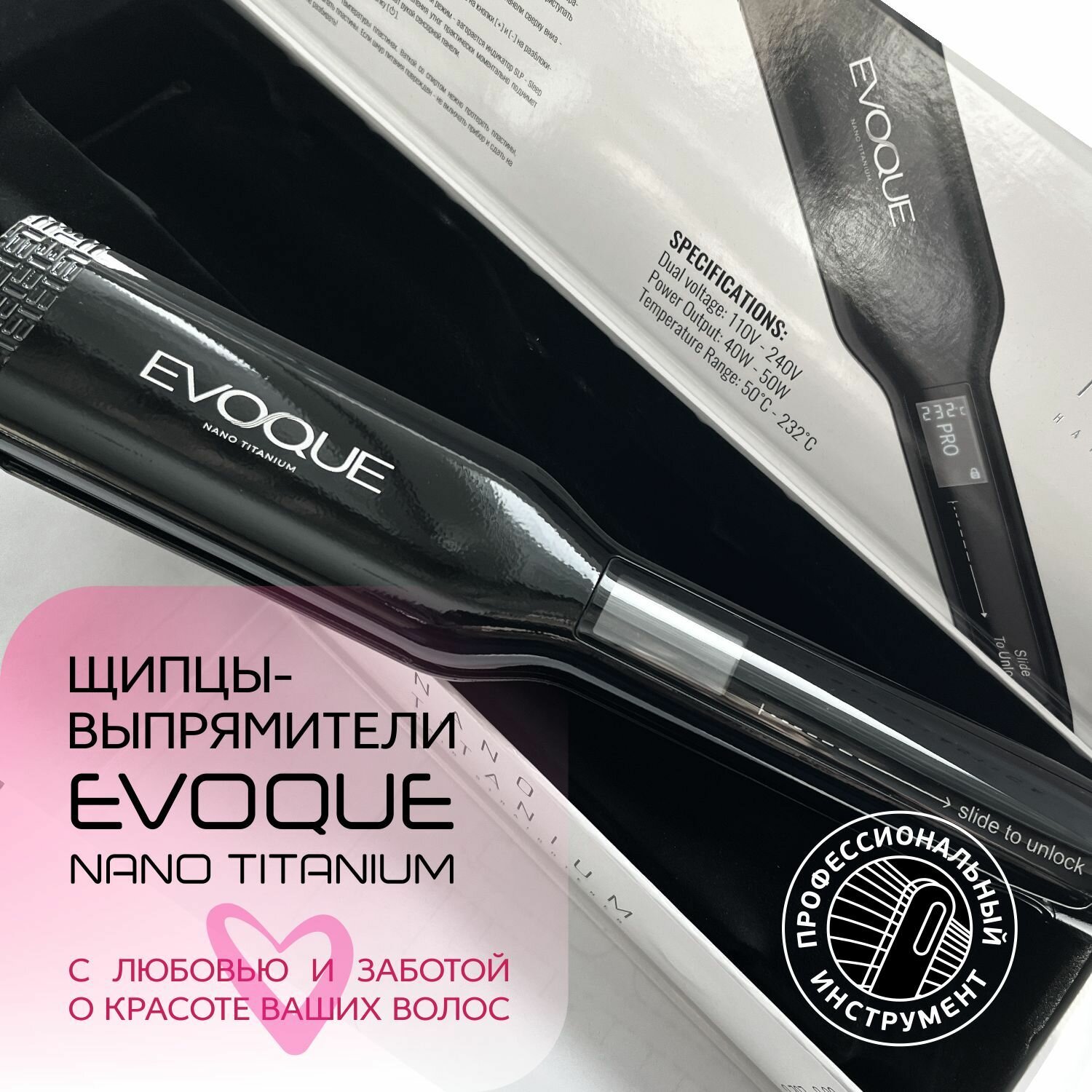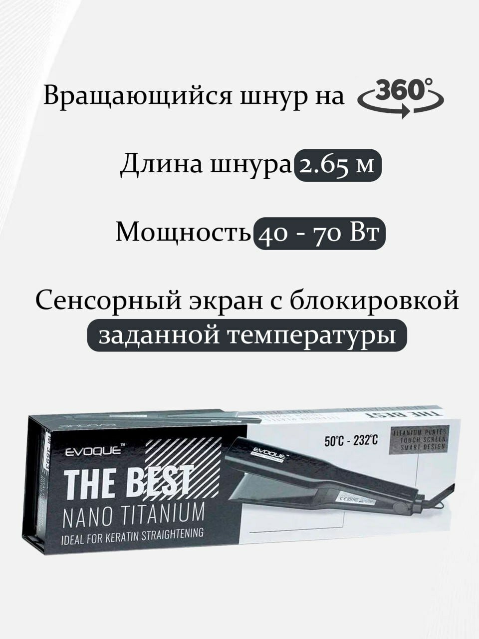 Щипцы-выпрямители с широкими пластинами EVOQUE BLACK TouchScreen Nano Titanium Wide интересное: