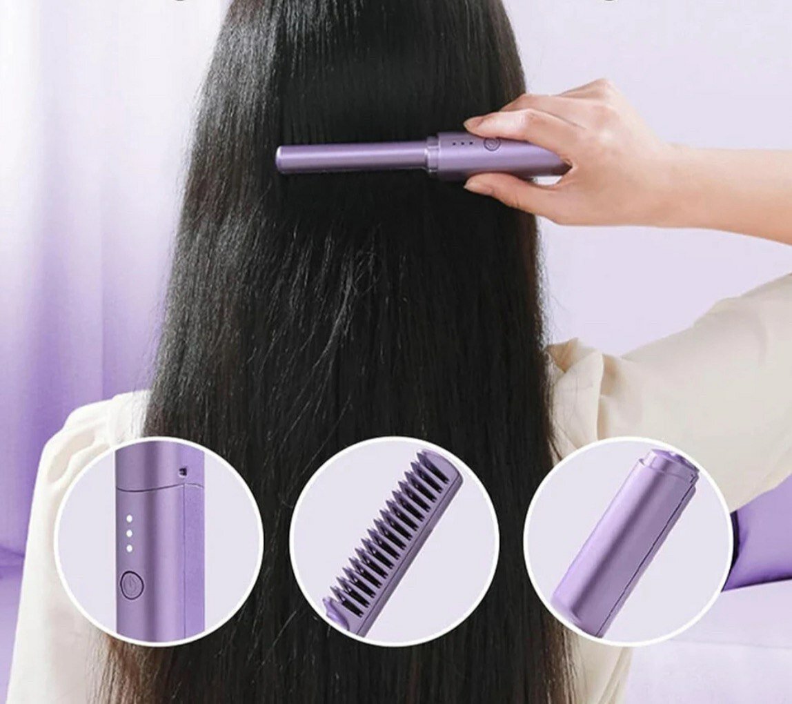 Электрическая портативная расческа-выпрямитель, стайлер для волос и бороды фиолетовая интересное:
