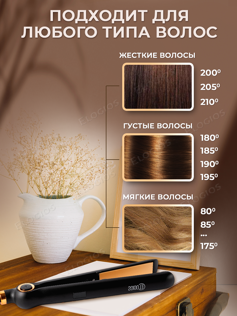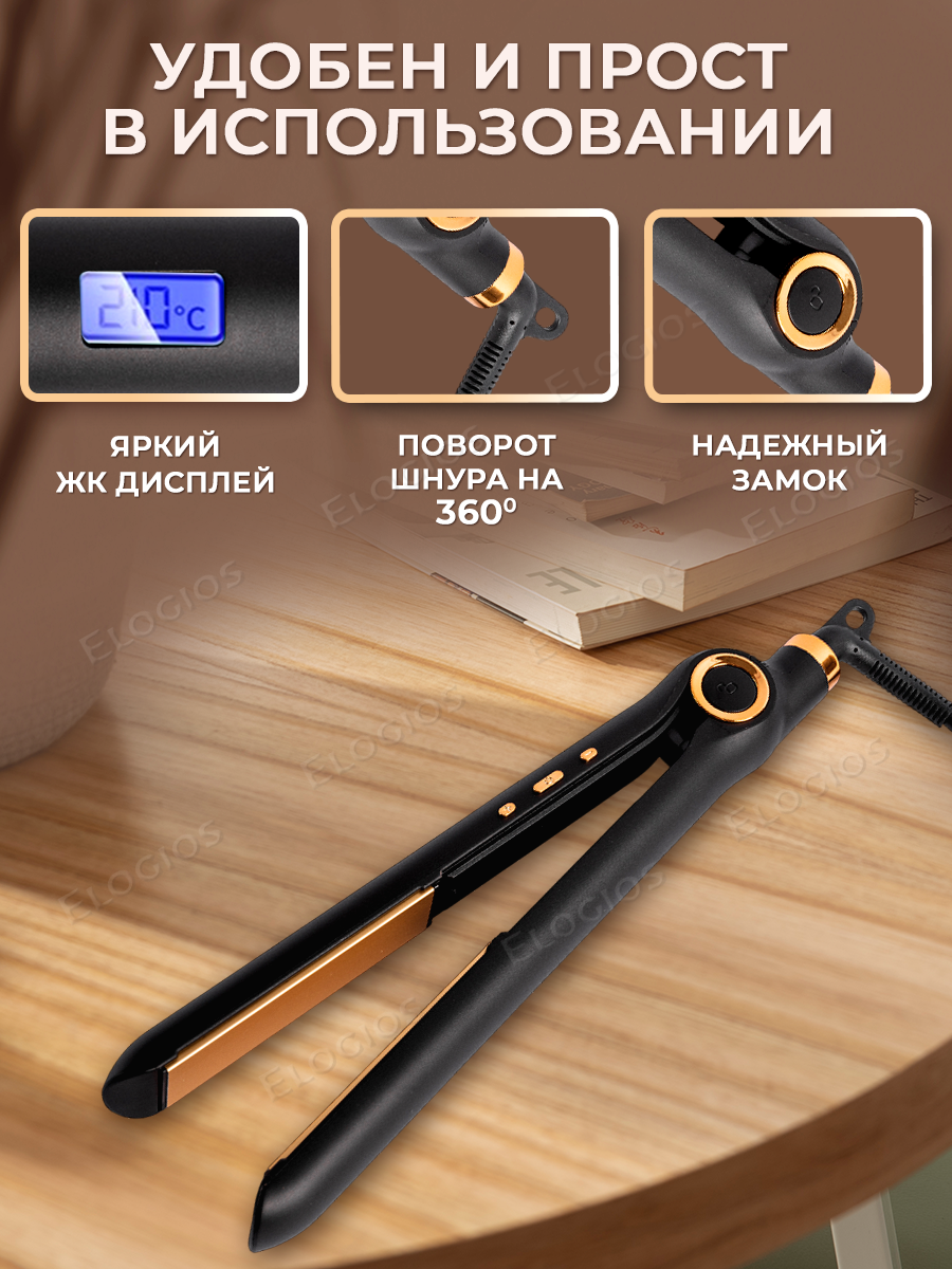 Профессиональный керамический выпрямитель для волос Elogios с турмалиновым покрытием интересное: