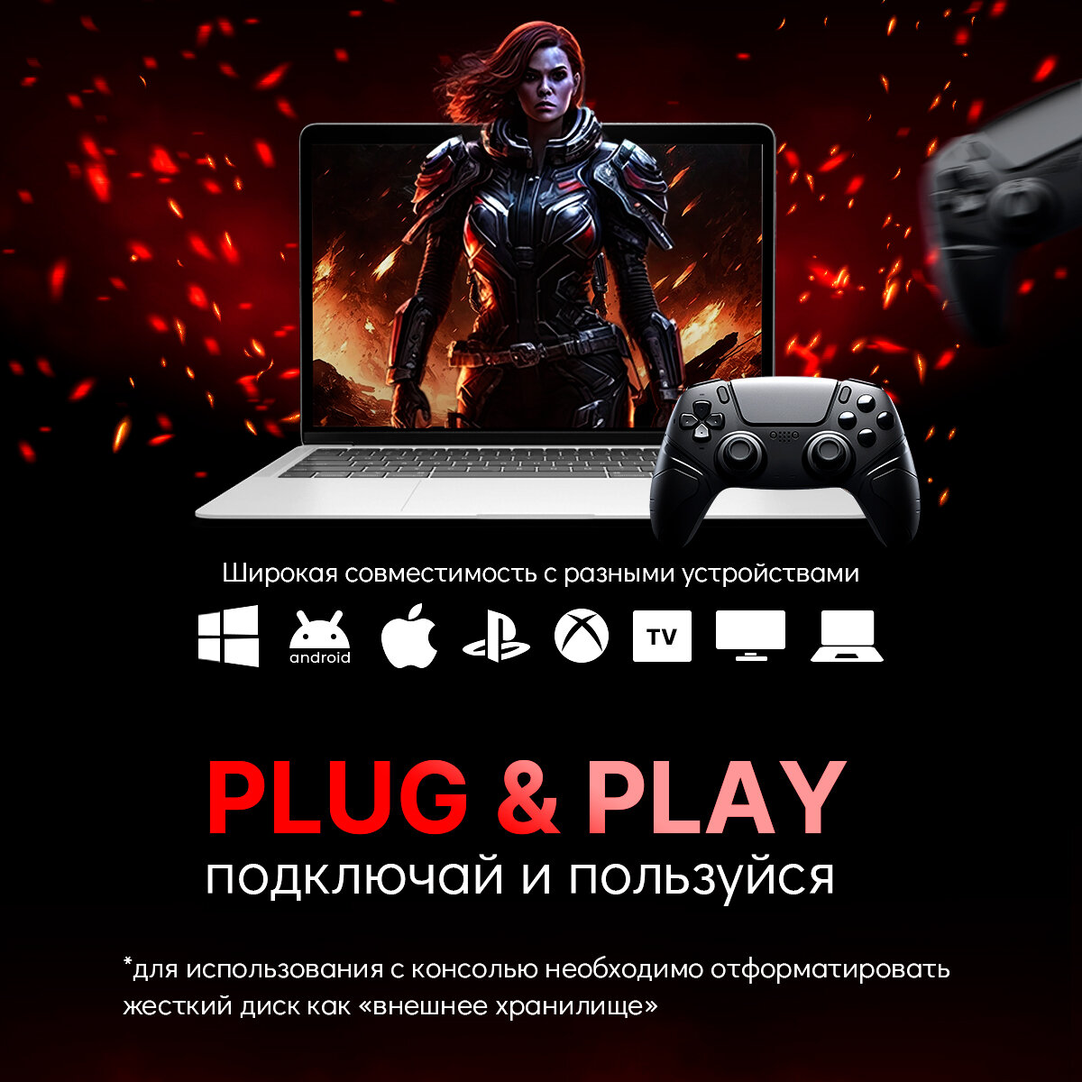 Внешний жесткий диск 360COOL 1TB, переносной HDD накопитель информации для PS4, PS5, XBOX X/S, съемный хард диск для пк/ноутбука/консоли, черный