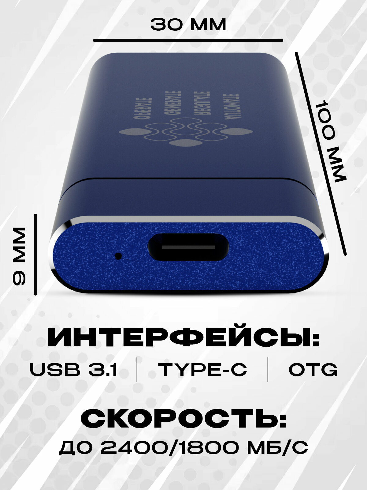 Внешний портативный SSD (Син./1024ГБ). Хранилище для смартфона, телефона, компьютера.