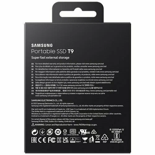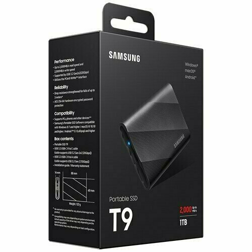 1 ТБ Внешний накопитель Samsung T9 SSD USB 3.2 Black (Черный) (Код модели: MU-PG1T0B/WW) интересное: