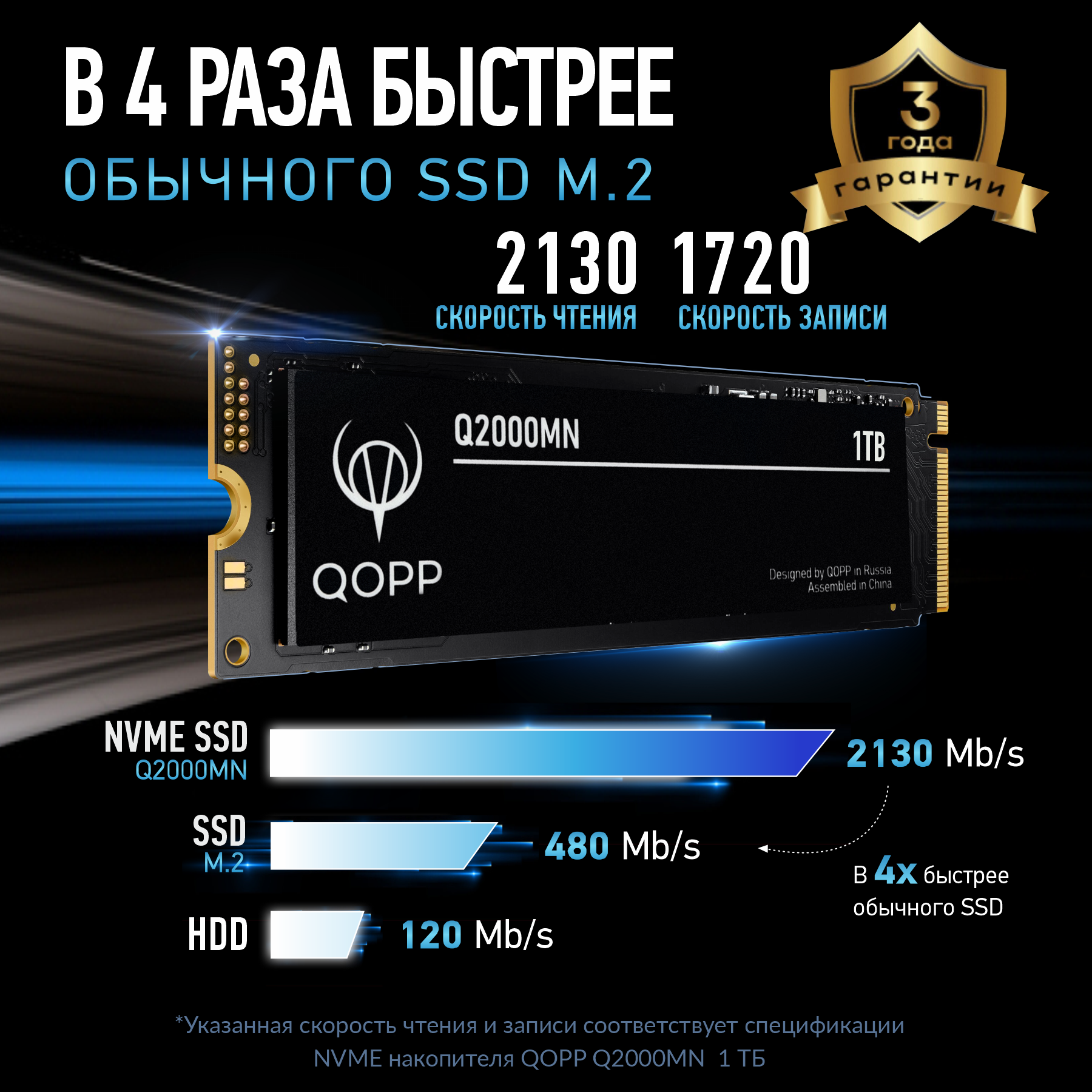 Купить 1 TB Внутренний SSD накопитель M.2 NVMe QOPP жесткий диск для ноутбука и компьютера