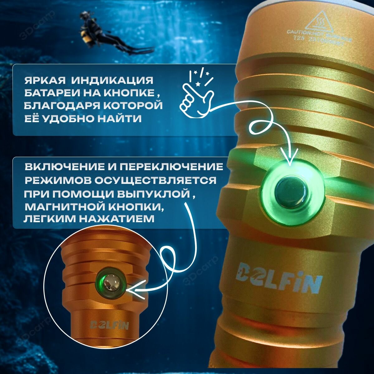 Фонарь подводный DELFiN T25 2500ЛМ теплый свет интересное: