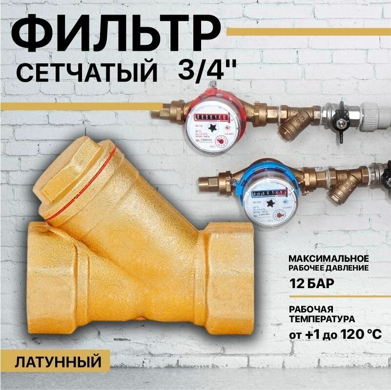Фильтр сетчатый косой грубой очистки воды латунный 3/4" , грязевик интересное: