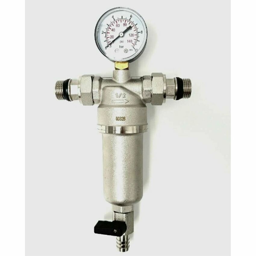 Самопромывной фильтр Zeissler 1/2НР/НР с манометром и корпусом из никелированной латуни, ZSf.302.0105N