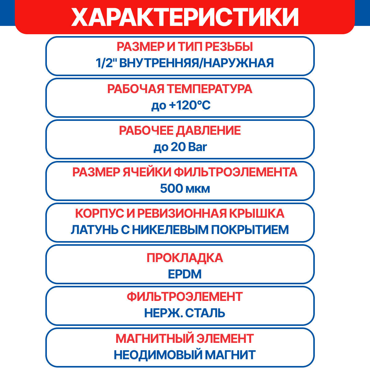 | Тип присоединения | муфтовый (ВР/ВР) |