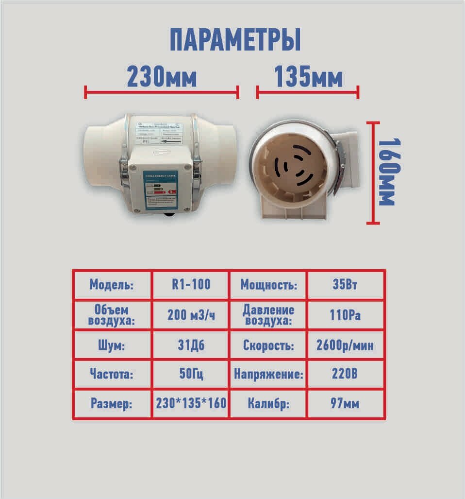 Канальный вентилятор приточно-вытяжной ZARTSEN 100мм, 220м3/ч, бесшумный. интересное: