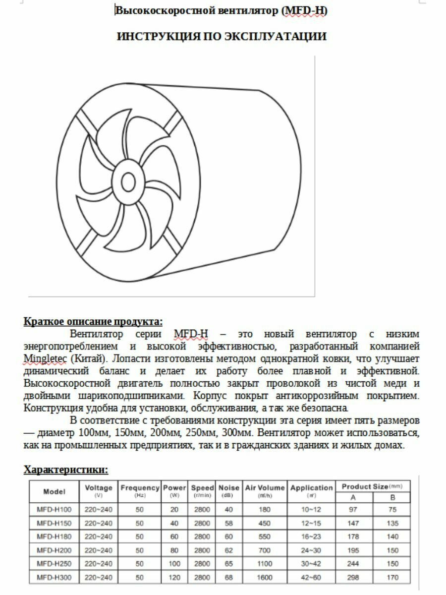 Вентилятор канальный металлический MFD-H100 (180м3/ч) интересное: