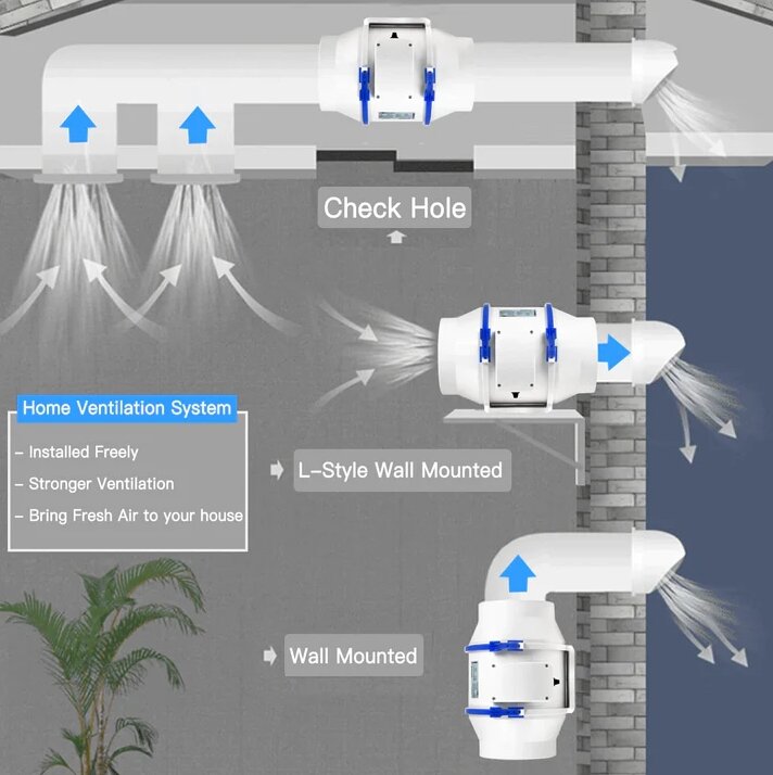 Купить Канальный вентилятор Hon&Guan GF-200P из ABS-пластика со смешанным потоком