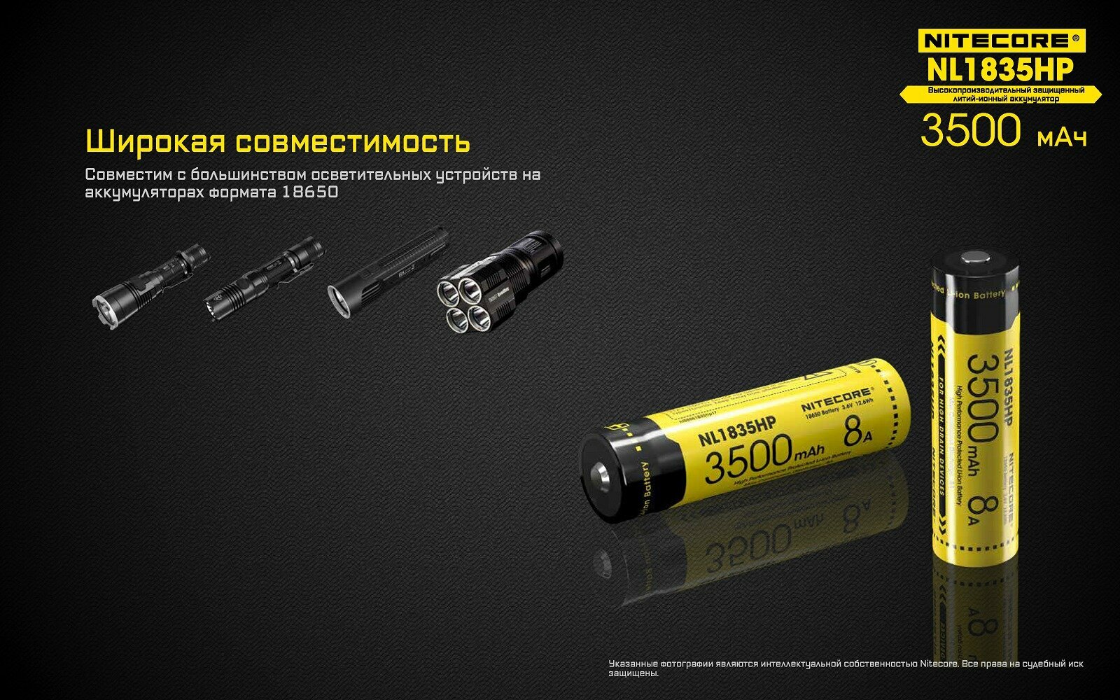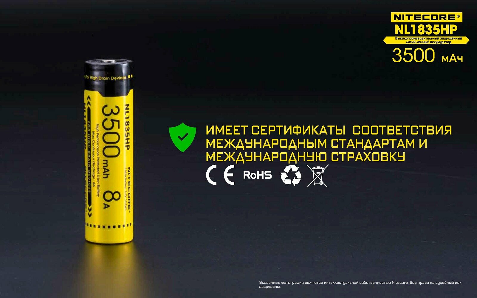 Купить Nitecore Аккумулятор NITECORE NL1835HP 18650 Li-Ion 8А, 3500 mAh