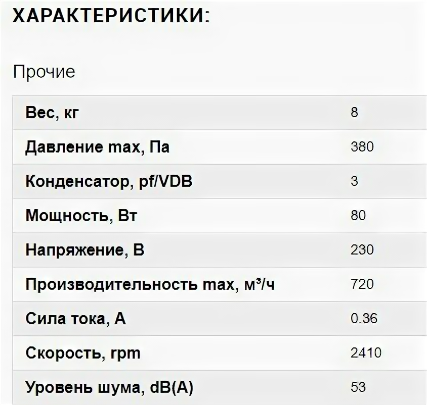 | Уровень шума | 53 дБ |