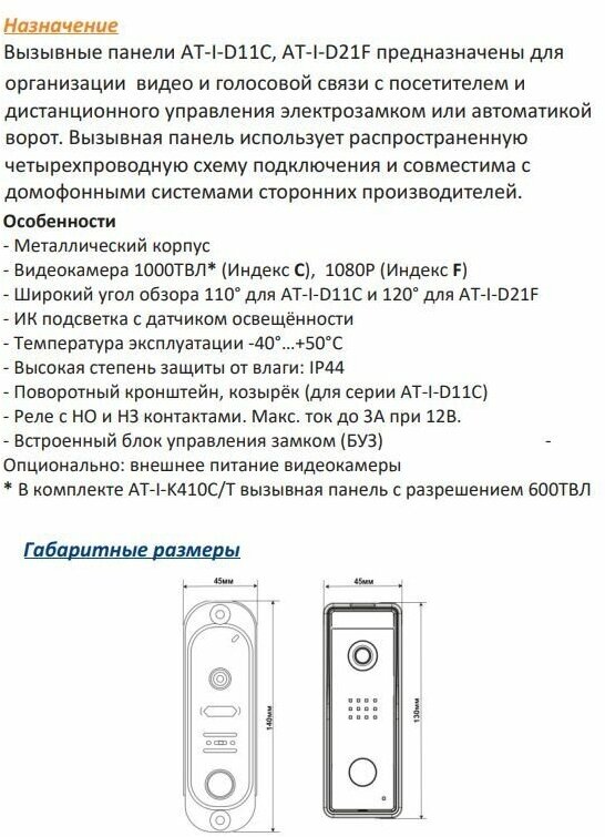 Вызывная панель ATIX AT-I-D11C Black для видеодомофона встроенный БУЗ интересное: