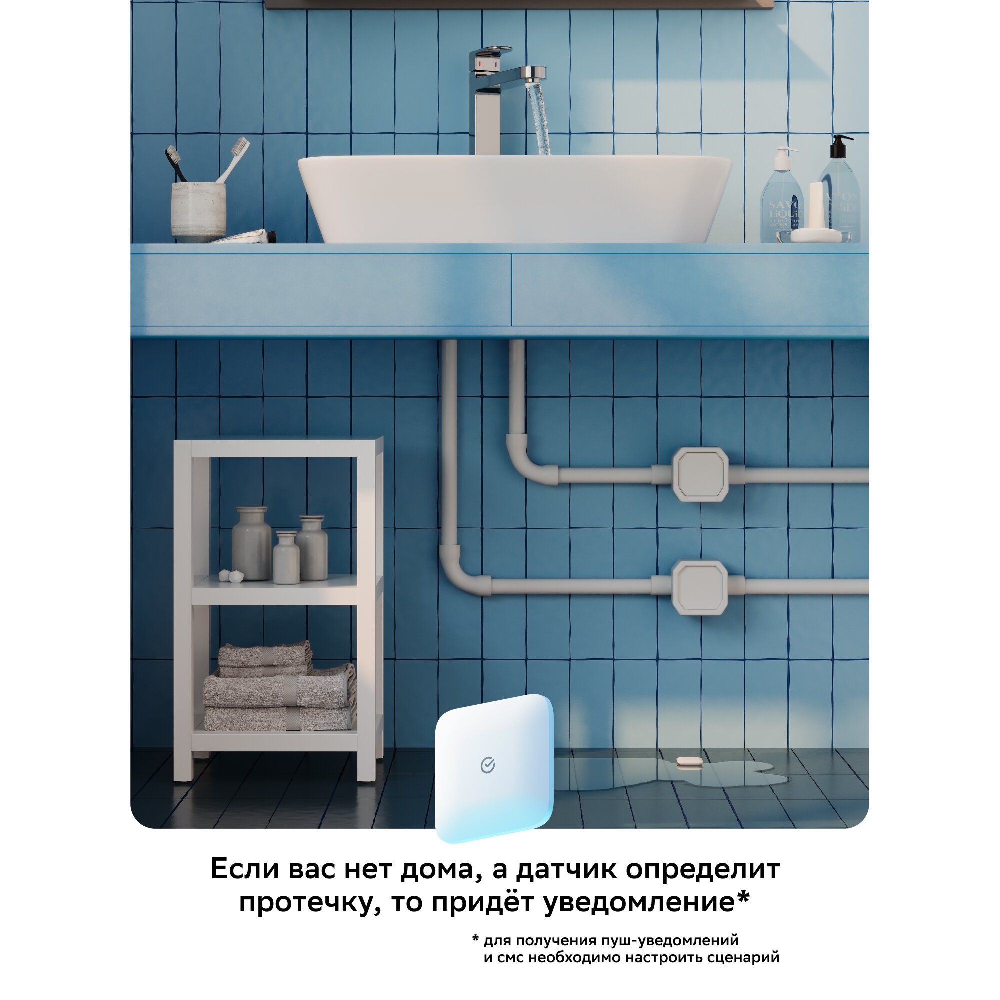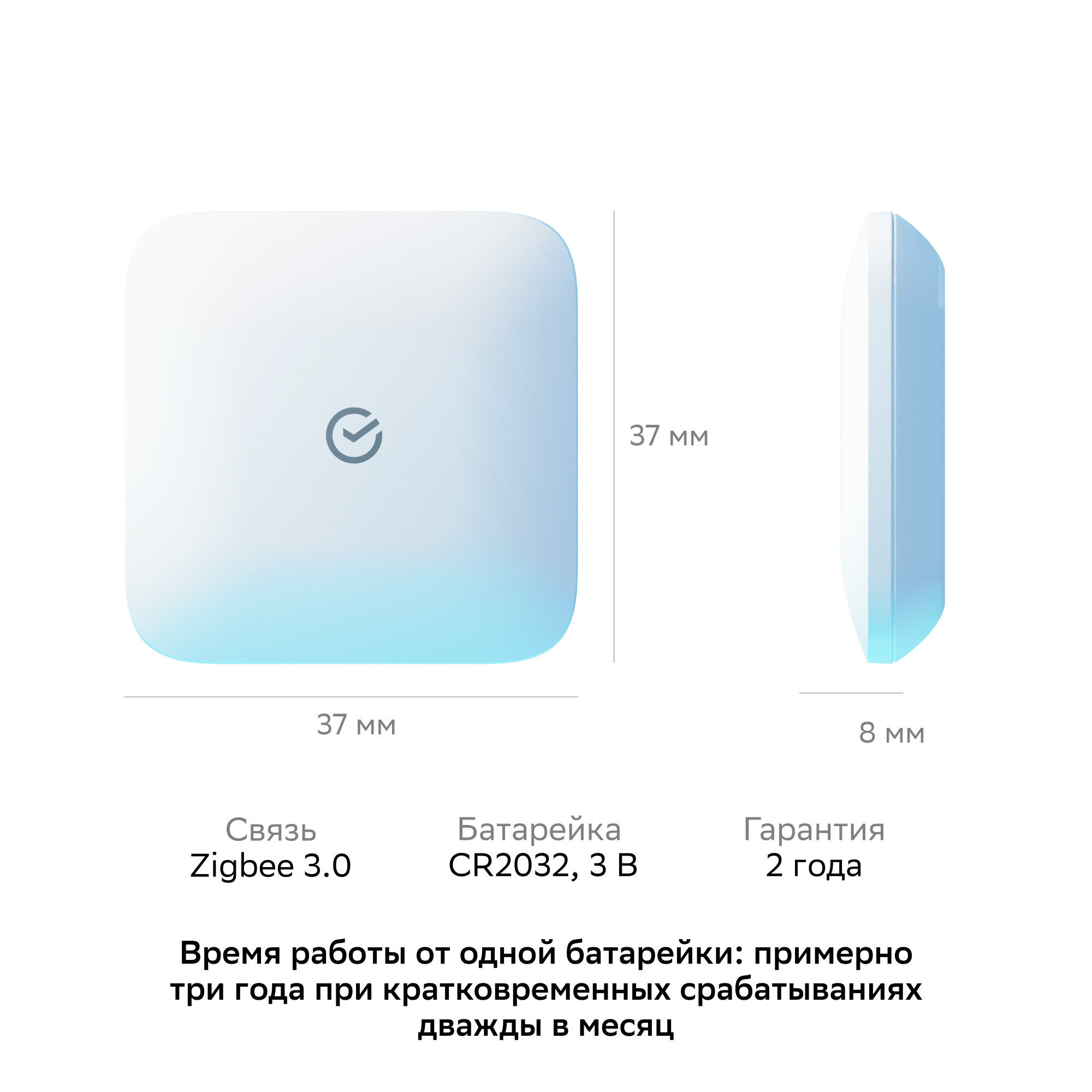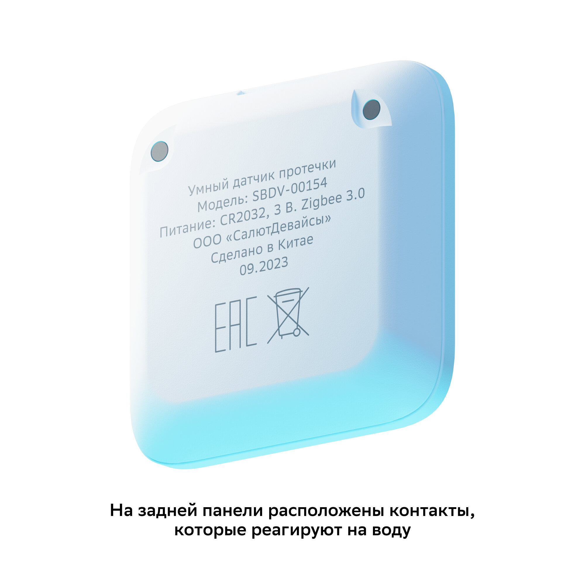 | Дополнительная информация | Комплект поставки: умный датчик протечки Sber, батарейка в датчике, руководство пользователя |