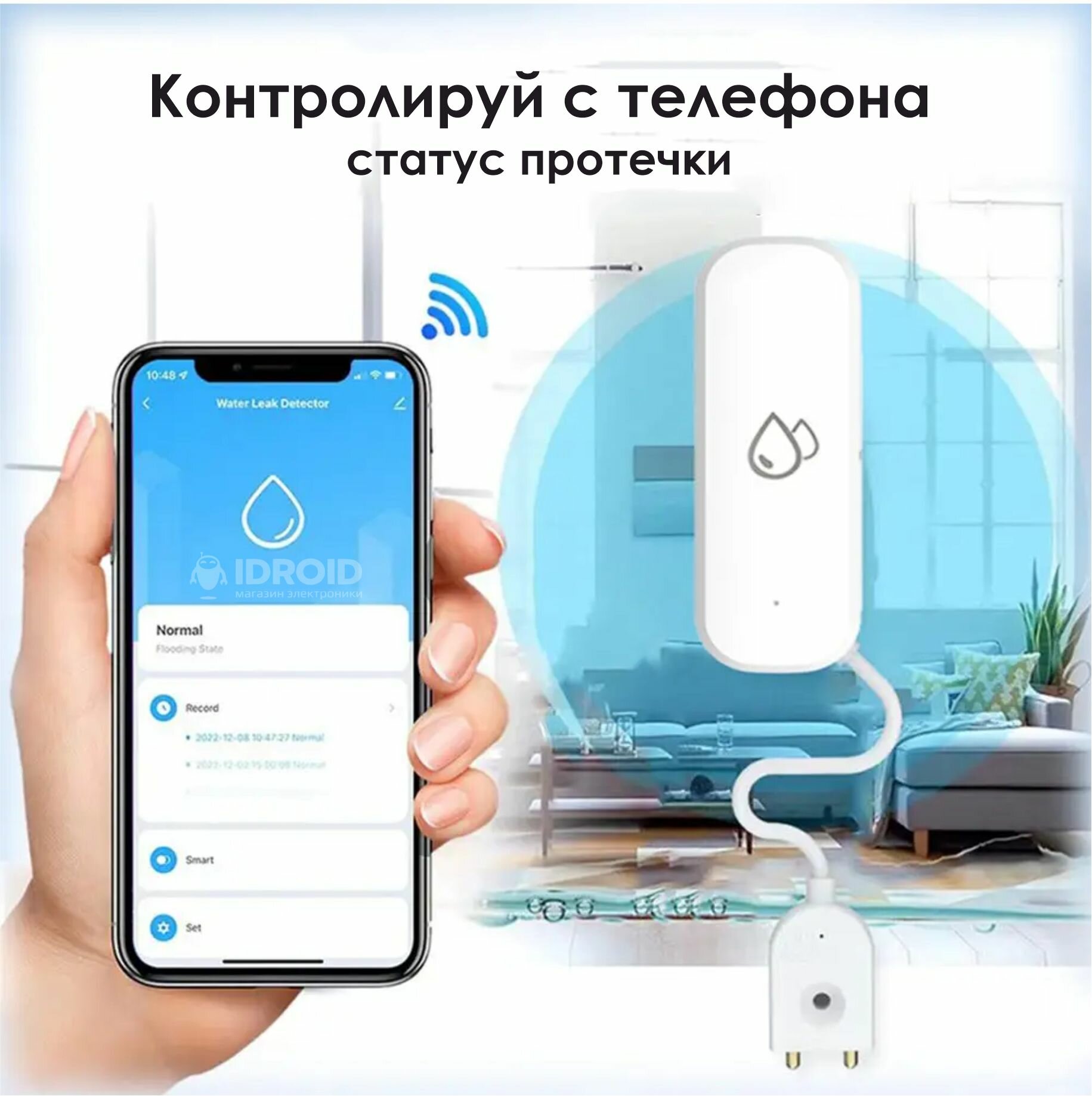 Умный беспроводной WIFI датчик протечки воды Tuya WI-FI Water Leak Detector интересное: