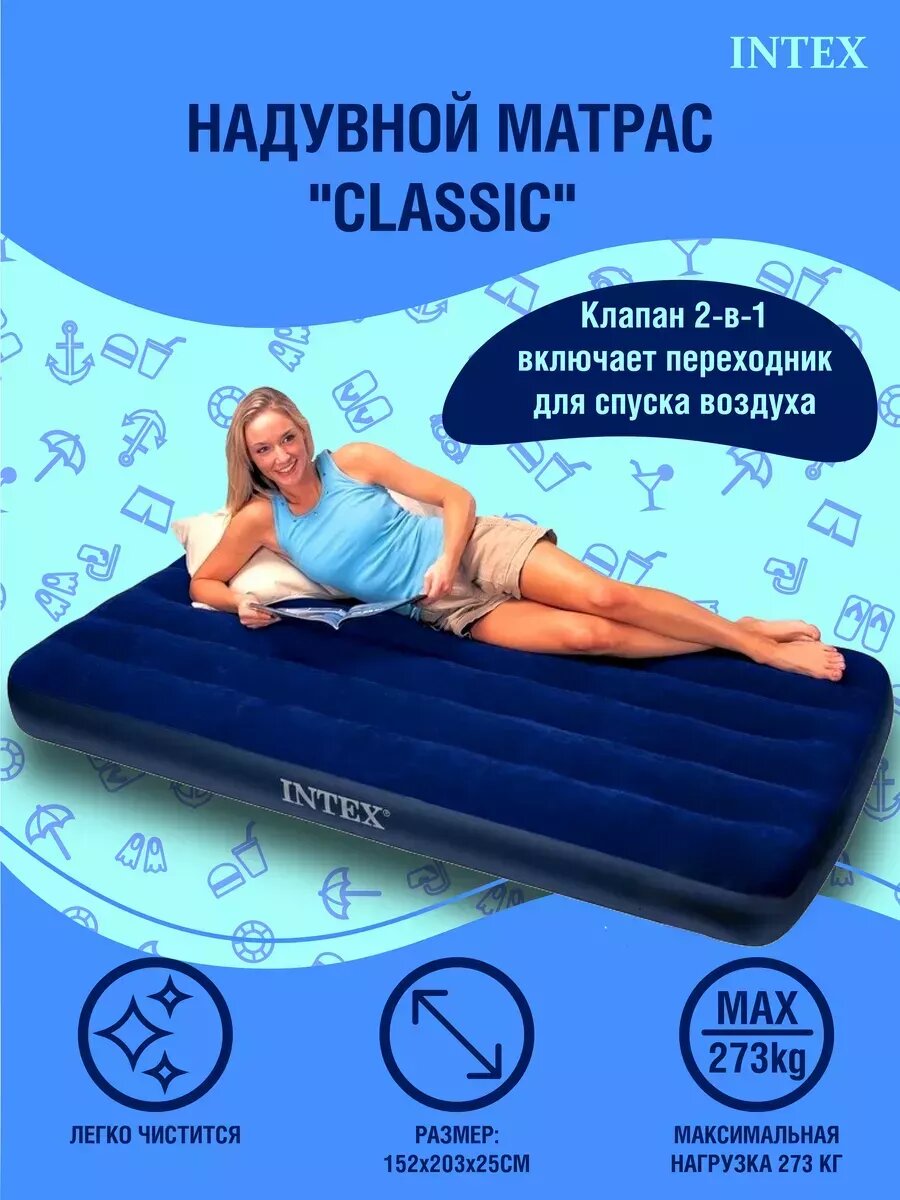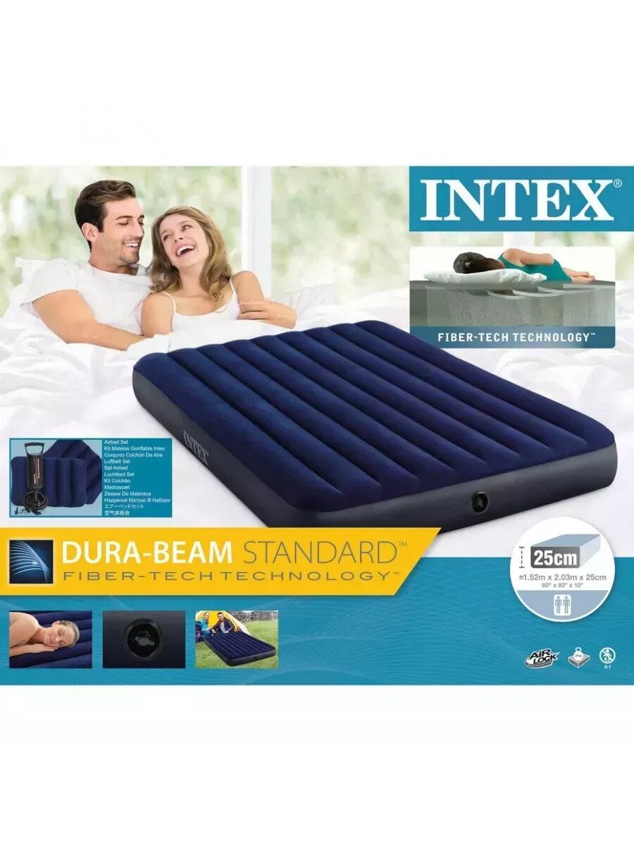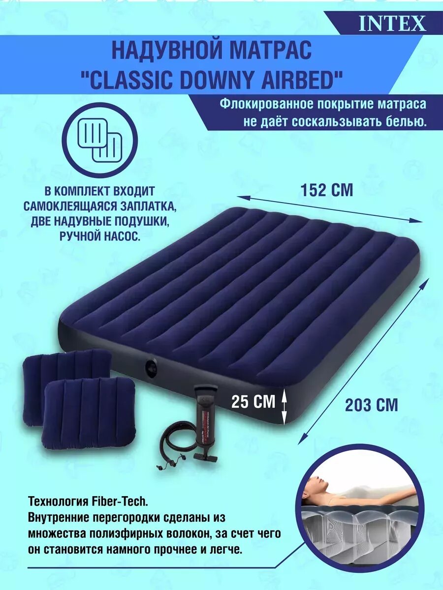 Матрас надувной Intex 64765 Набор 152х203х25 см + 2 подушки + насос. интересное: