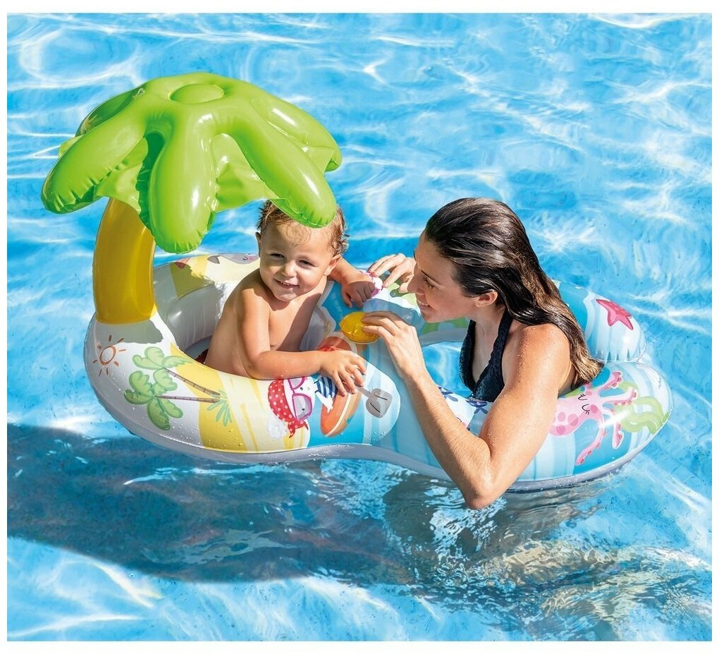 Надувной плотик Мой Первый Плот, с навесом, 117х75см, от 1 до 2 лет интересное: