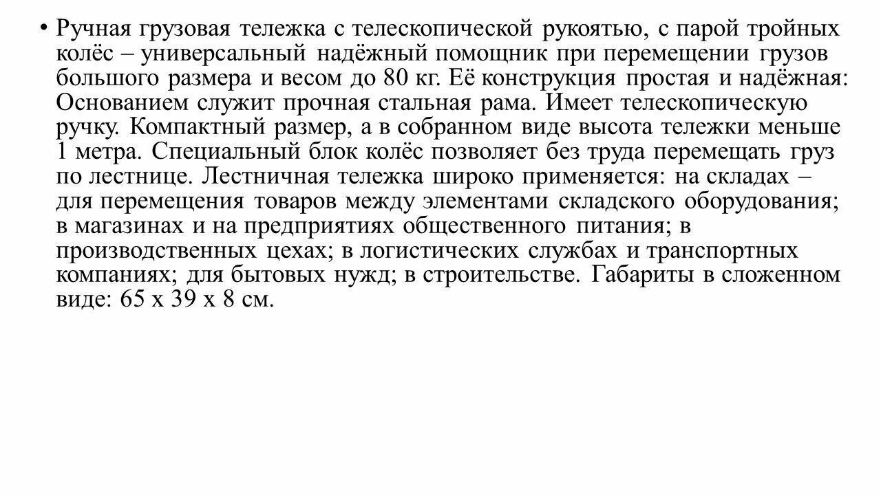 Ниже Вы можете прочитать отзывы на Тележка шаговая лестничная, ознакомится с подробными характеристиками, посмотреть интересные обзоры и фотографии на Тележка шаговая лестничная.