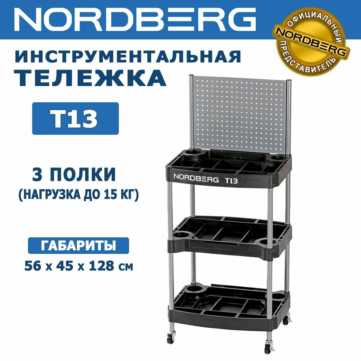 Тележка инструментальная с 3 пластиковыми полками и перфорацией NORDBERG T13 | цена за 1 шт интересное: