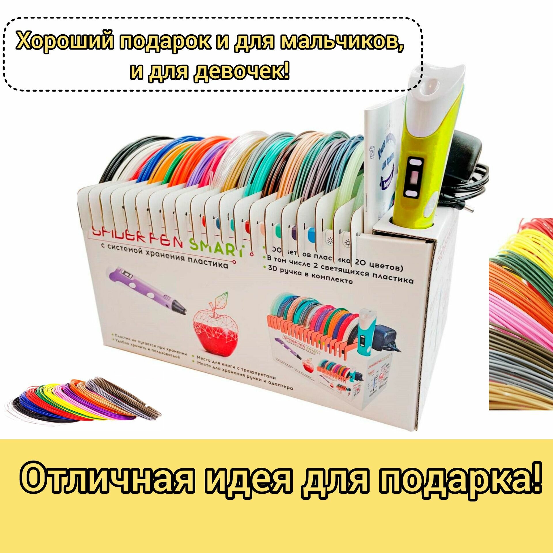 3D ручка SPIDER PEN YELLOW "10 ИГР", (Книга Трафаретов + 20 цветов пластика с системой хранения) электротовар