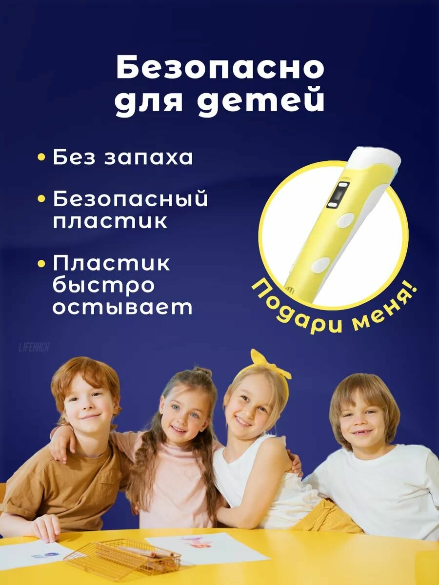 3д ручка с набором пластика 110м трафарета в подарок - желтый интересное: