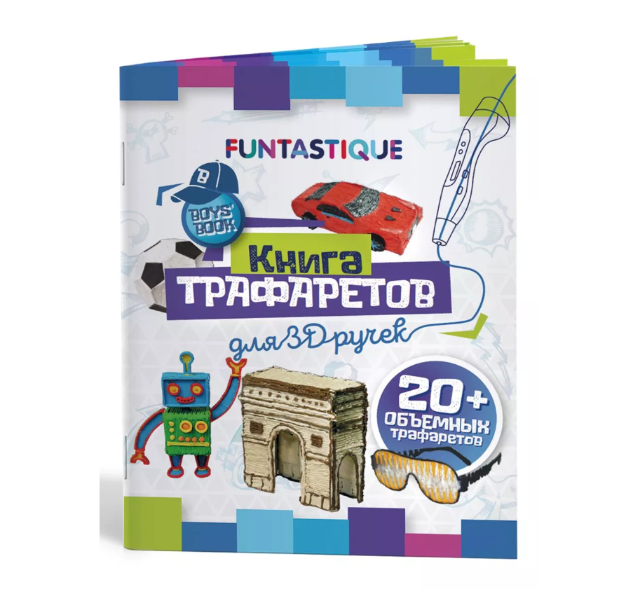 Купить Набор для 3Д творчества FUNTASTIQUE 3D-ручка Base + PETG-пластик 7 цветов + светящийся PETG-пластик 3 цвета + Книжка с трафаретами (для мальчиков)
