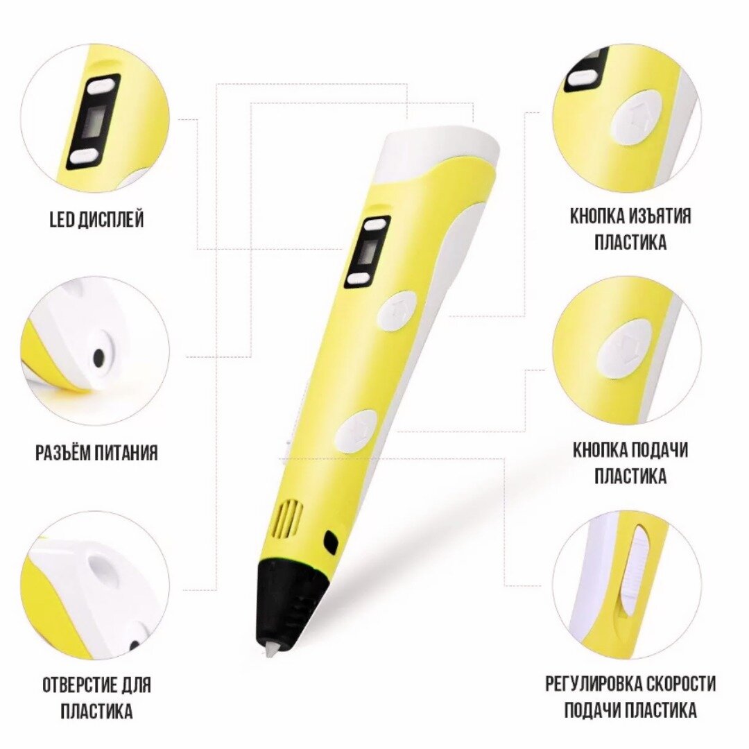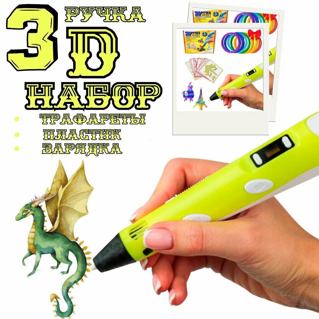 3D ручка / Набор 3D ручка с пластиком и трафаретами / желтый интересное: