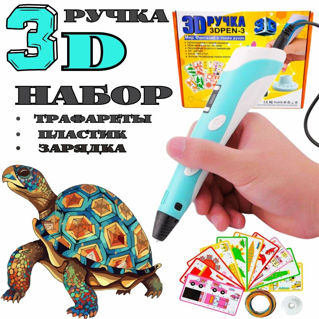 3D ручка / Набор 3D ручка с пластиком и трафаретами / голубой интересное:
