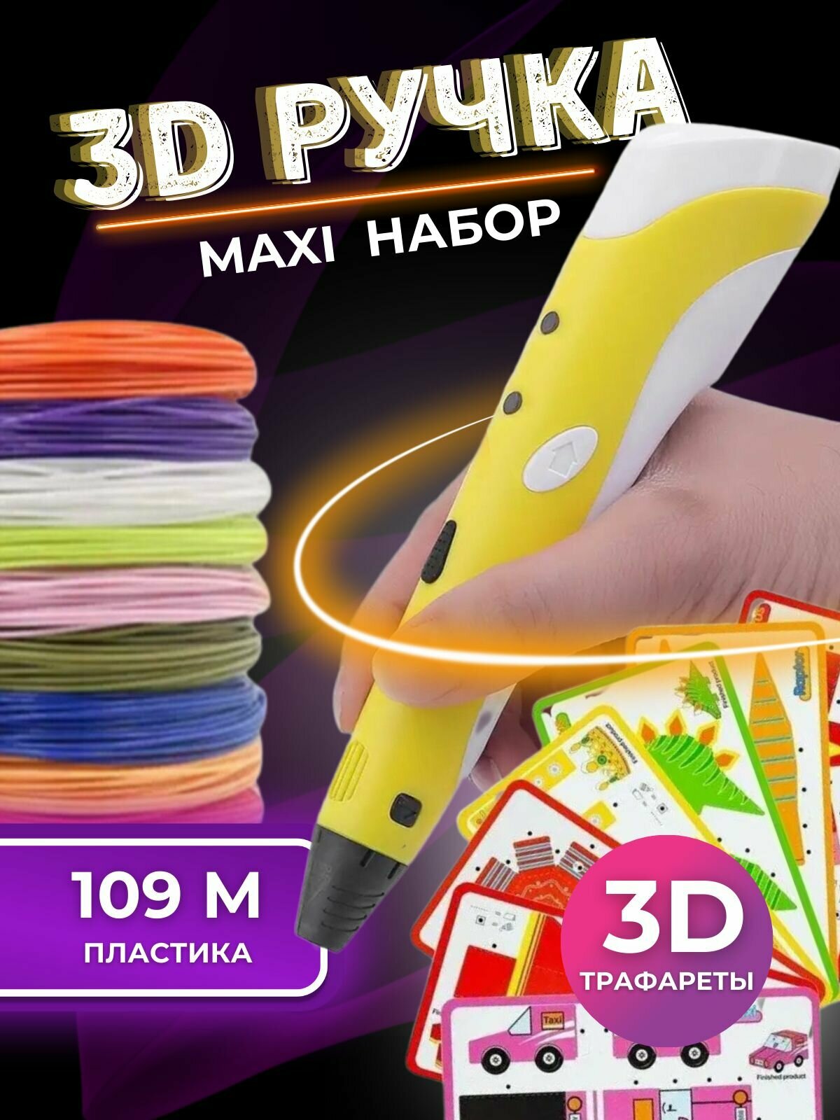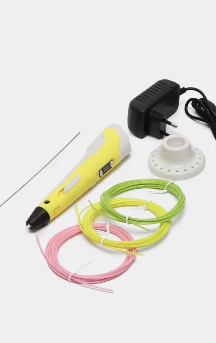 Купить 3D ручка 3DPEN-2 желтая с набором пластика PLA для 3д рисования