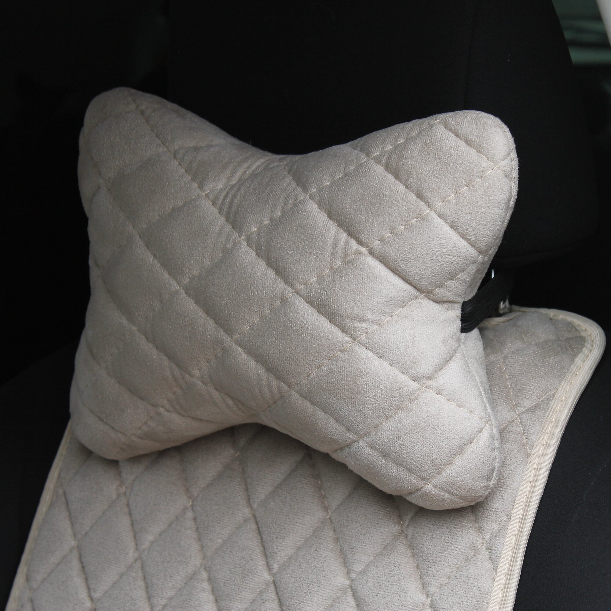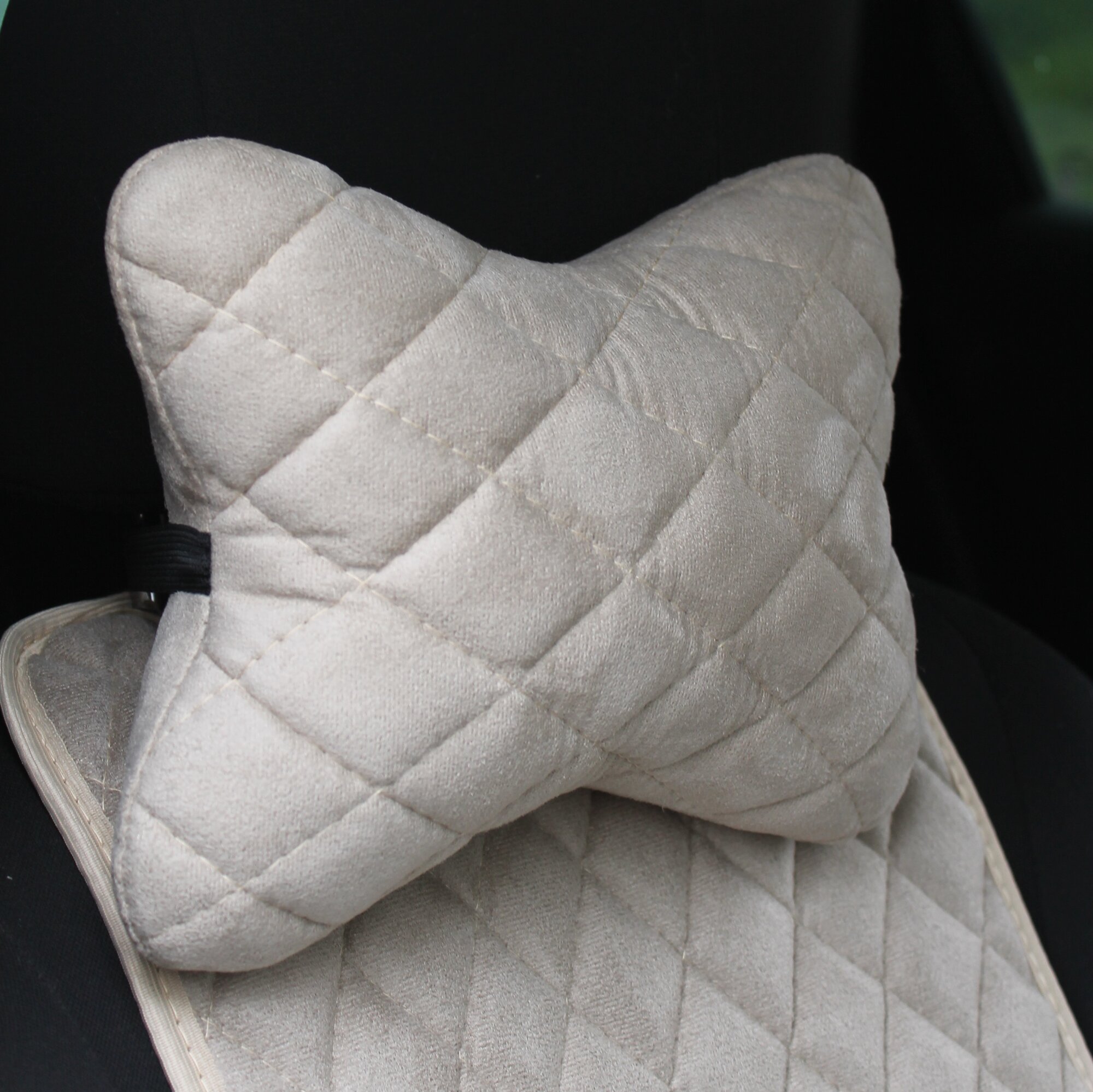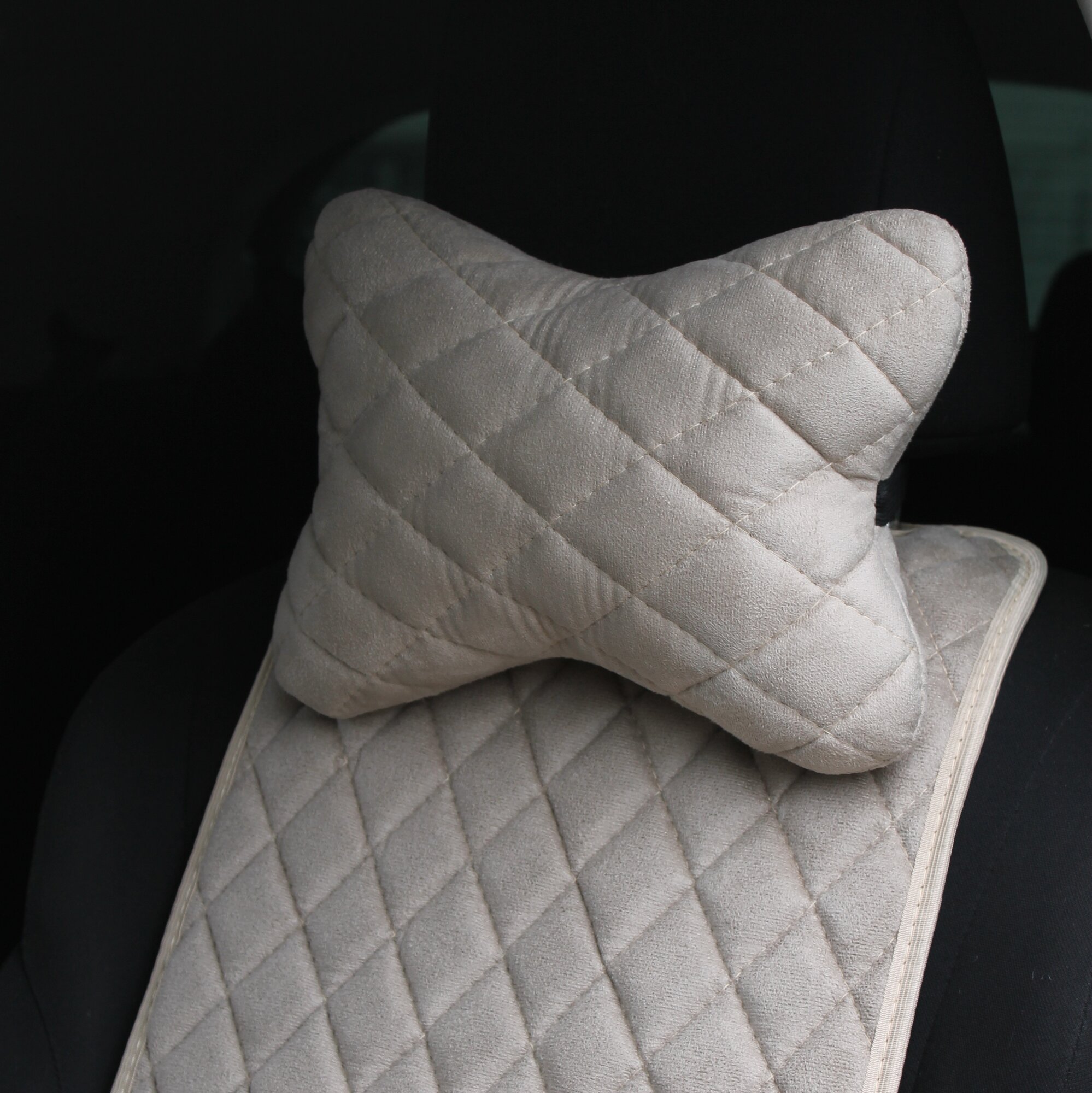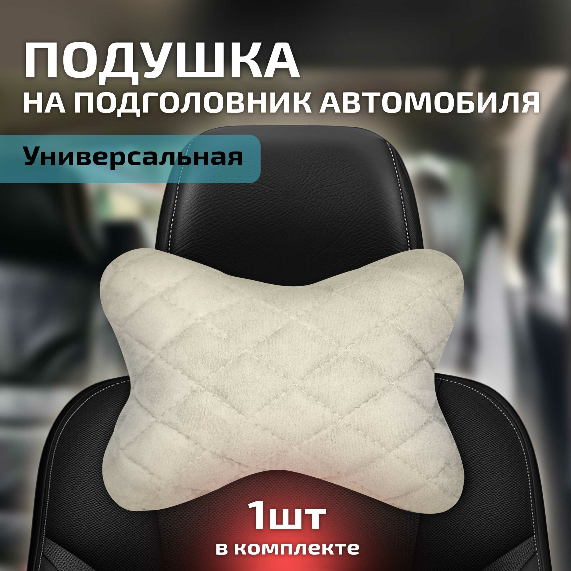 Автомобильная подушка - косточка из алькантары на подголовник бежевая интересное:
