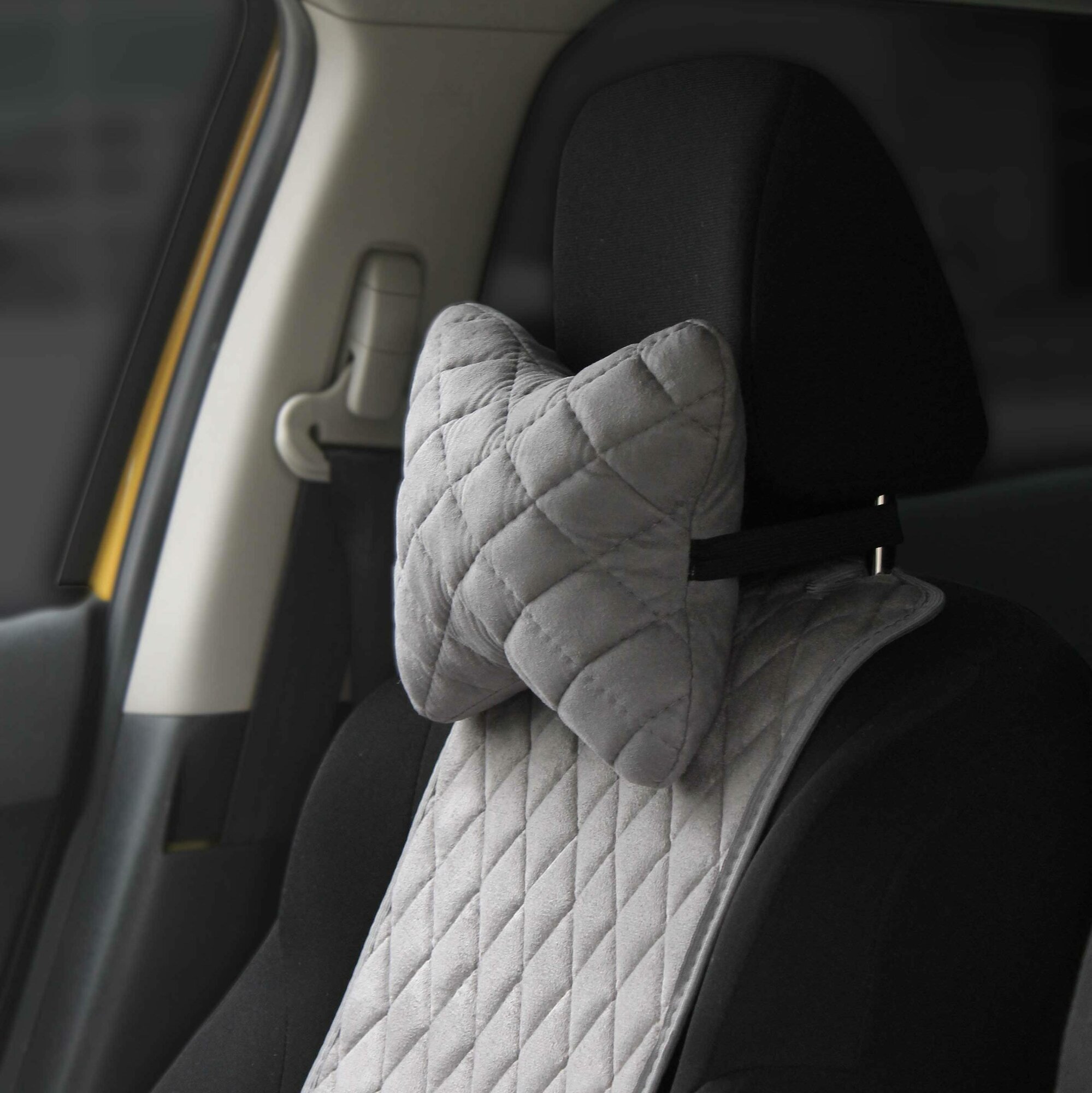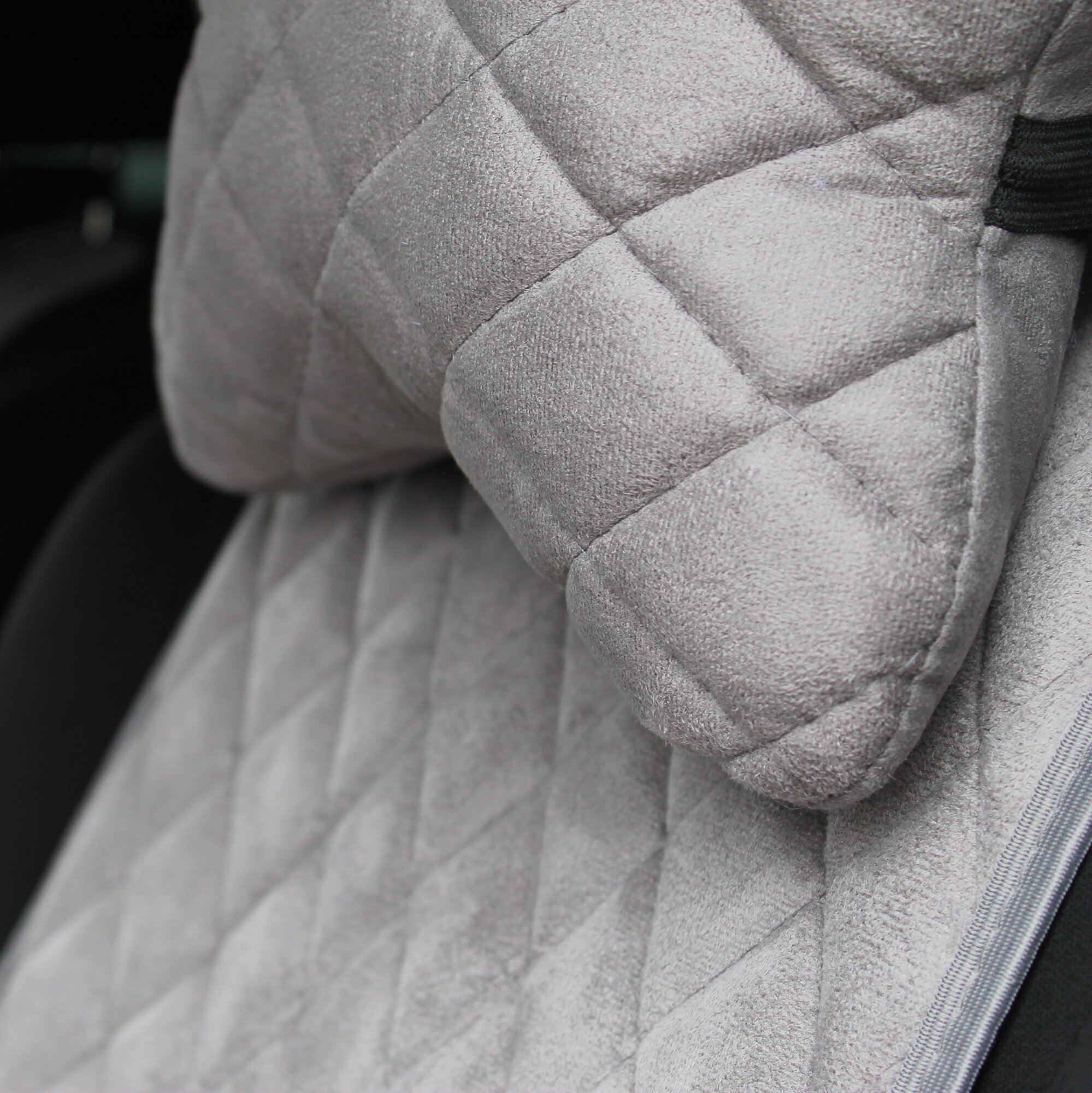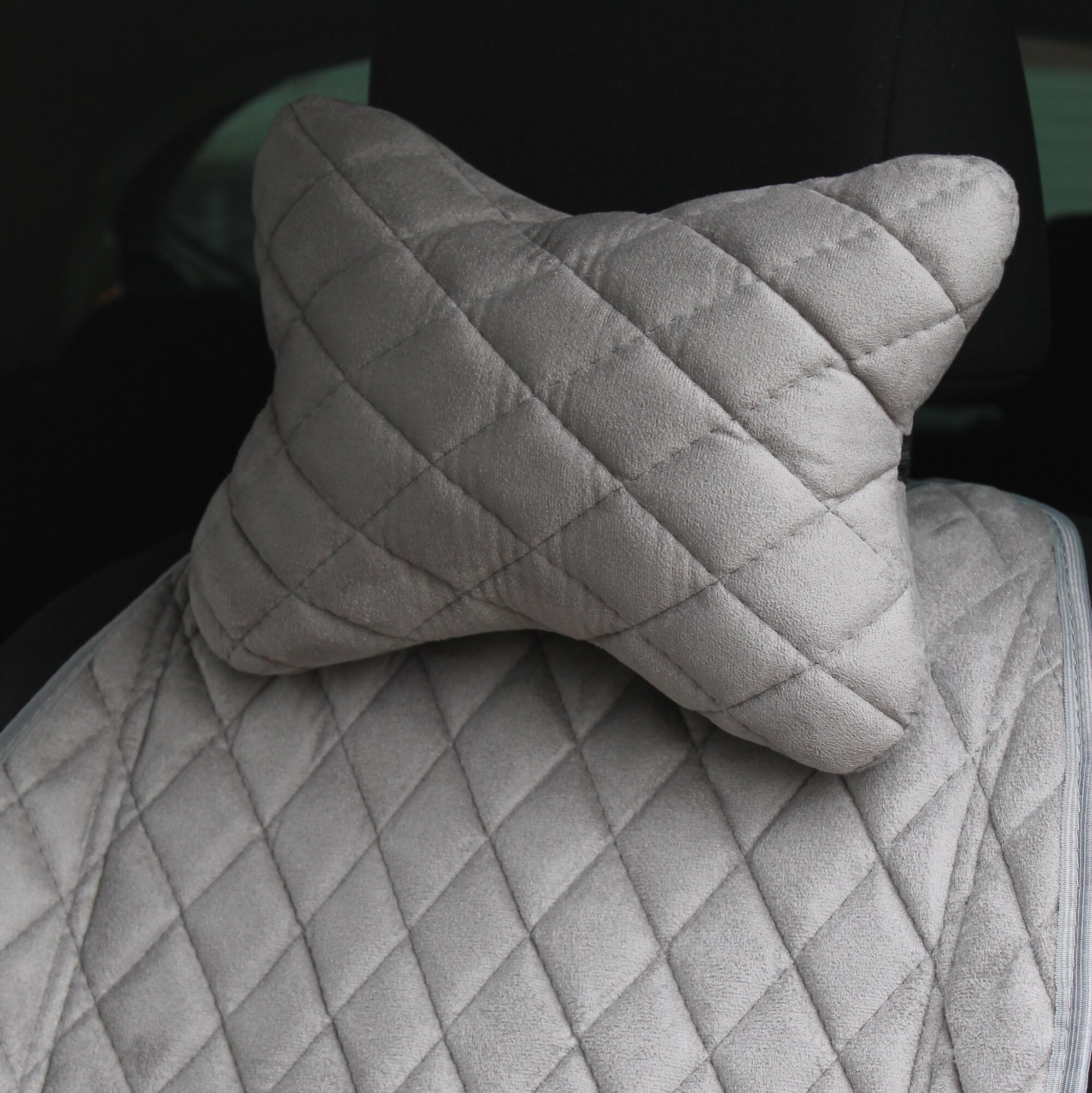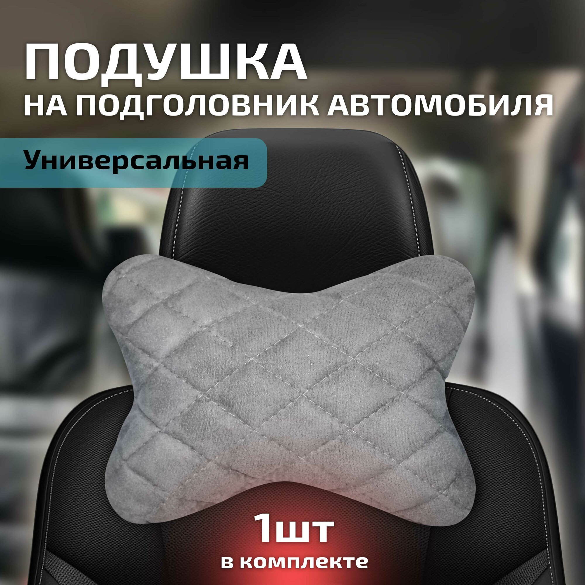 Автомобильная подушка - косточка из алькантары на подголовник серая интересное: