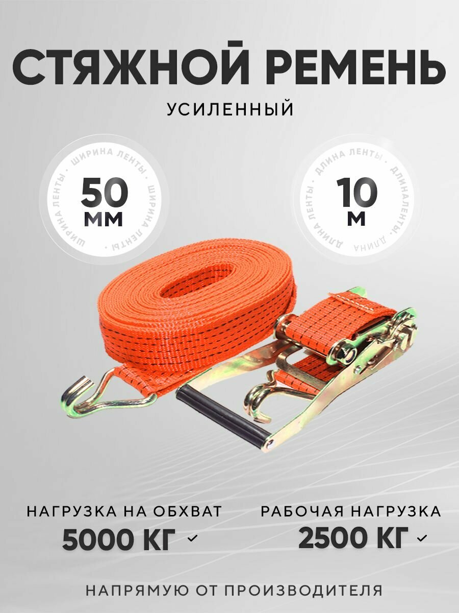 Cтяжные ремни с храповым механизмом для стяжки и крепления груза, такелажный ремень для грузчиков, длина 10м , ширина 75мм, 10/20т